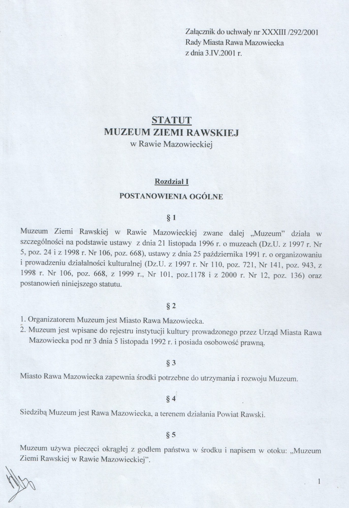 Statut Muzeum Ziemi Rawskiej