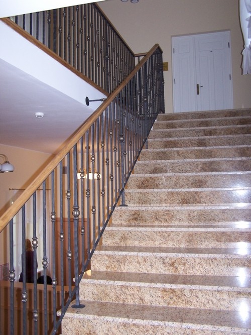 - wymianę balustrad schodowych drewnianych na stalowe "kute"