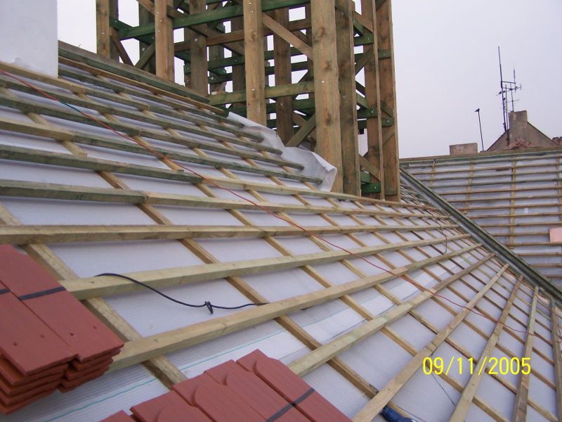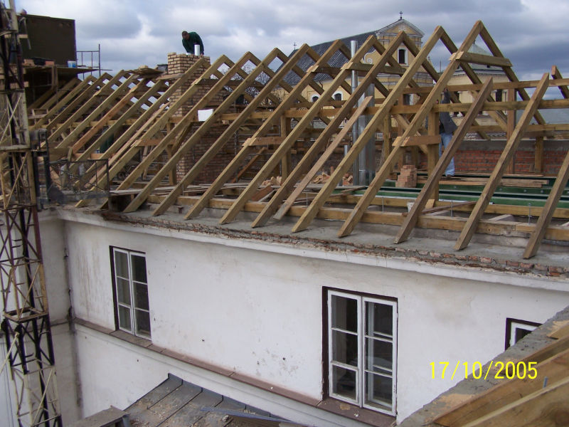 - wymianę konstrukcji drewnianej więźby dachowej wraz z pokryciem dachówką ceramiczną