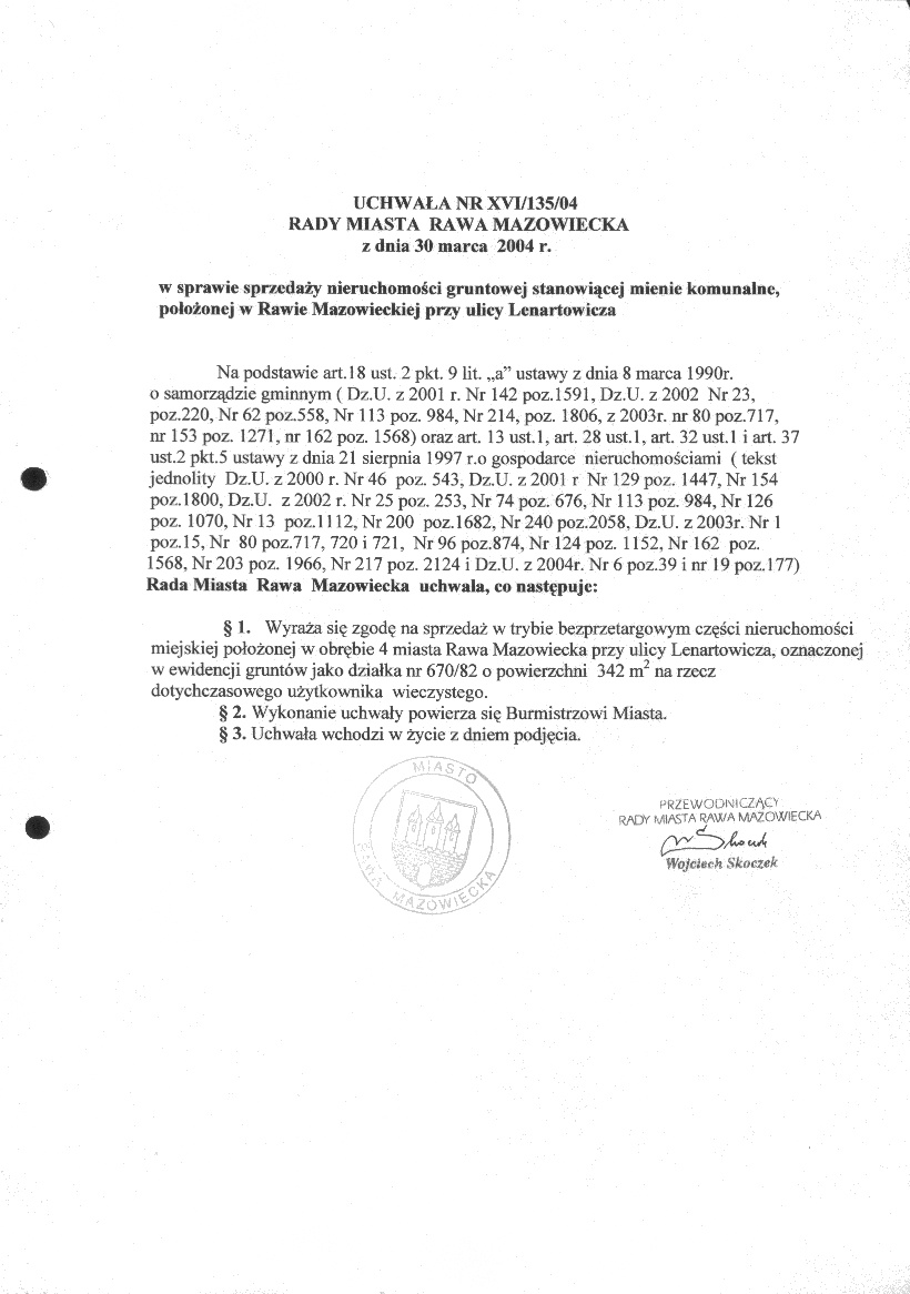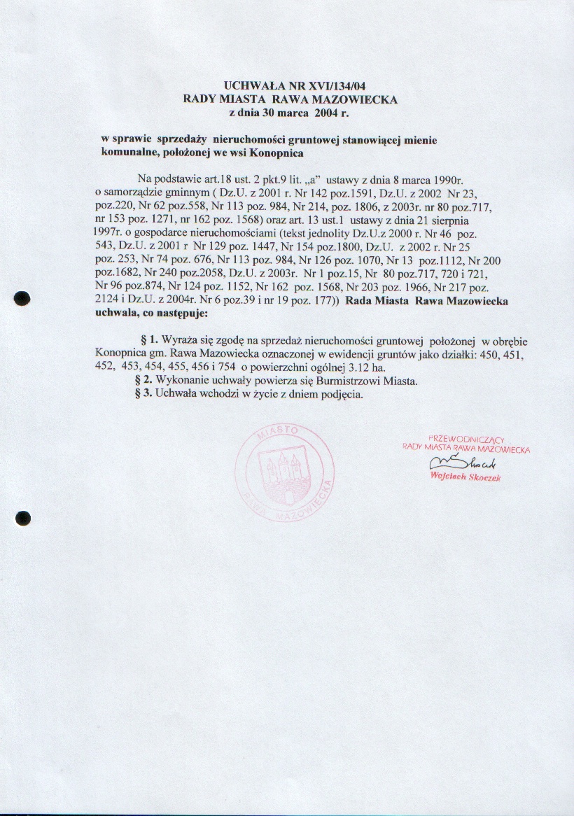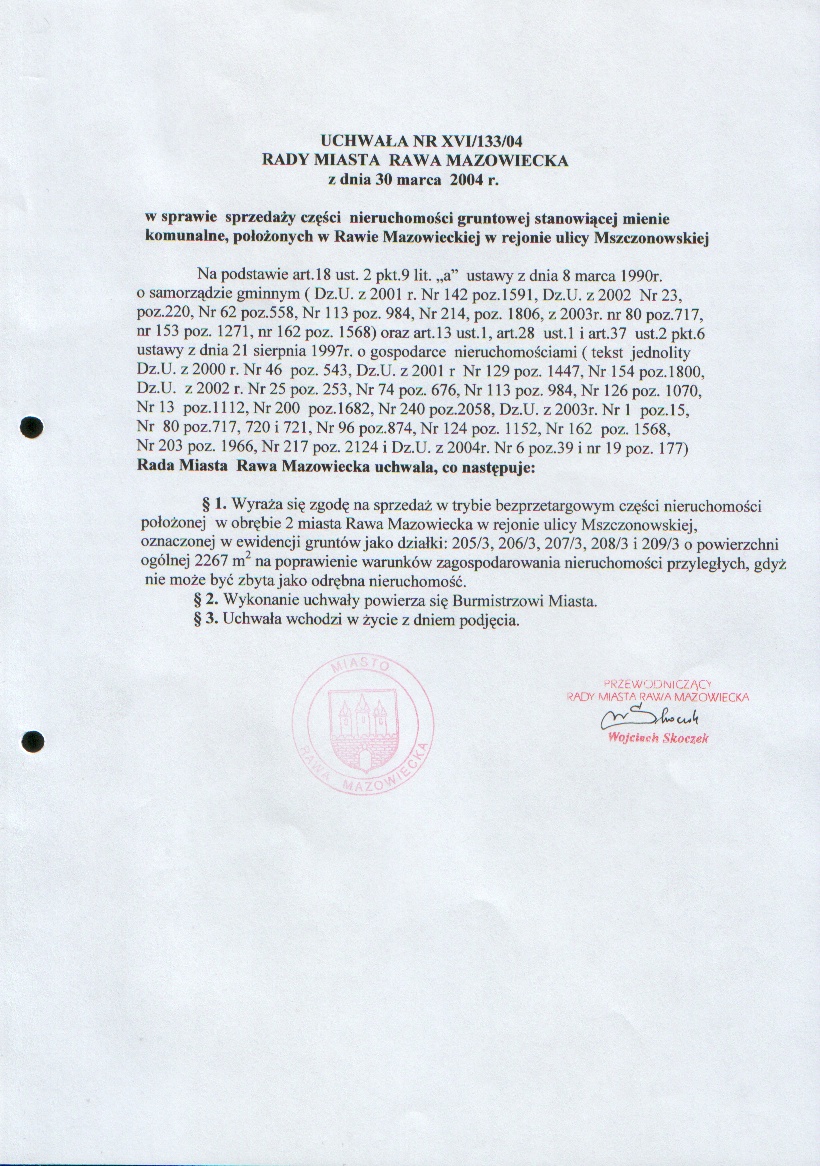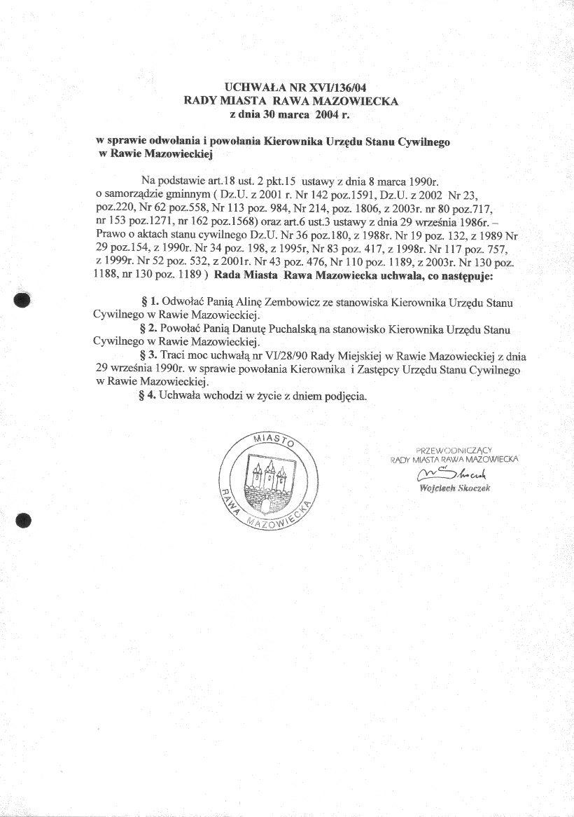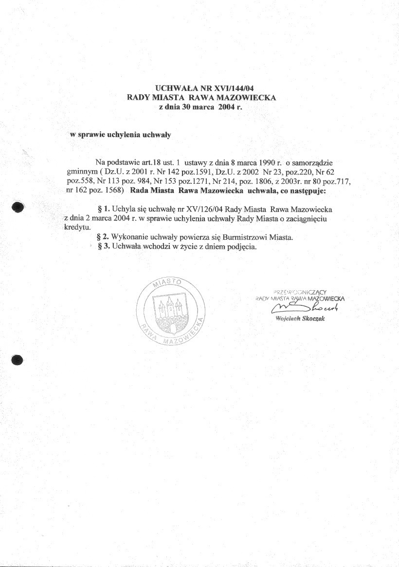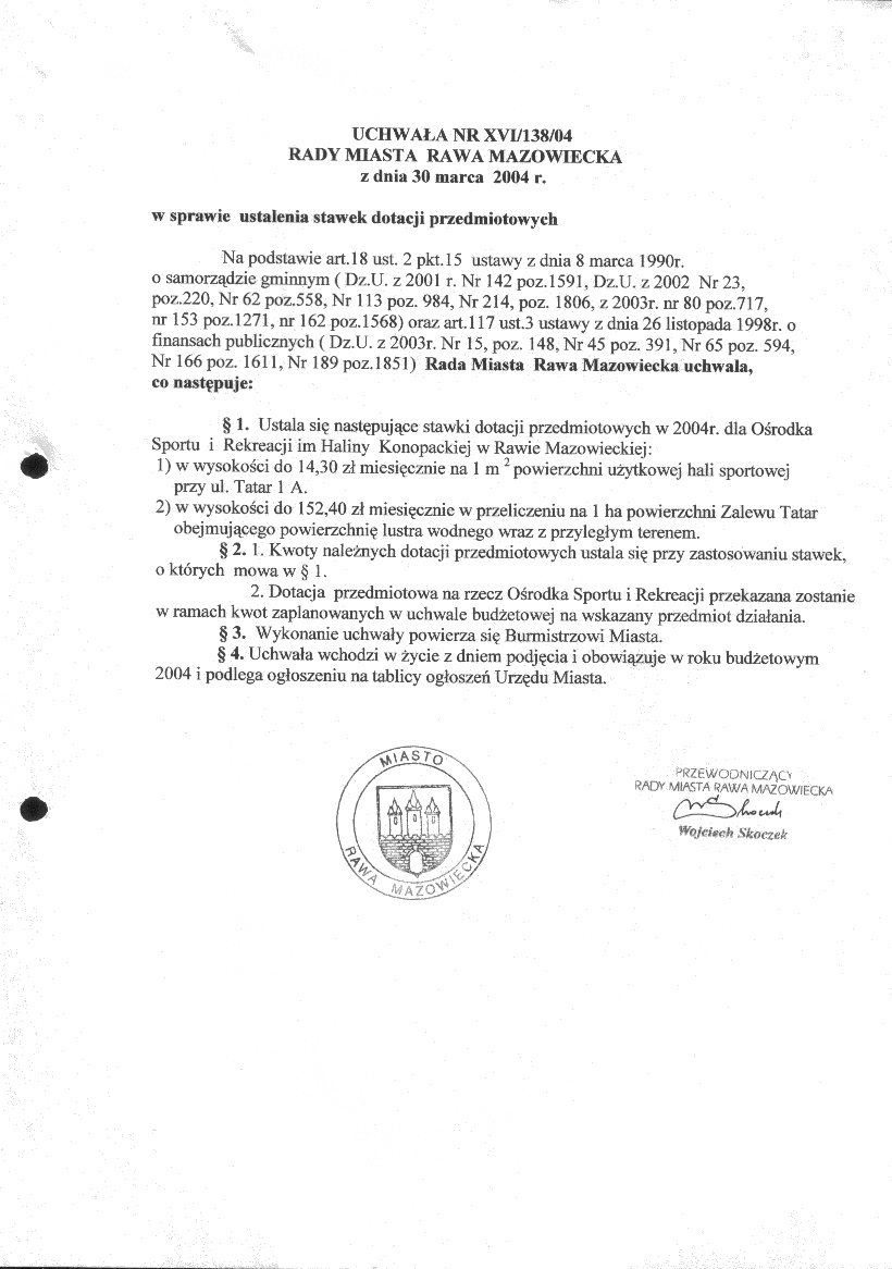 uchwałą nr VIII/65/03 Rady Miasta Rawa Mazowiecka z dnia 30 czerwca 2003r.