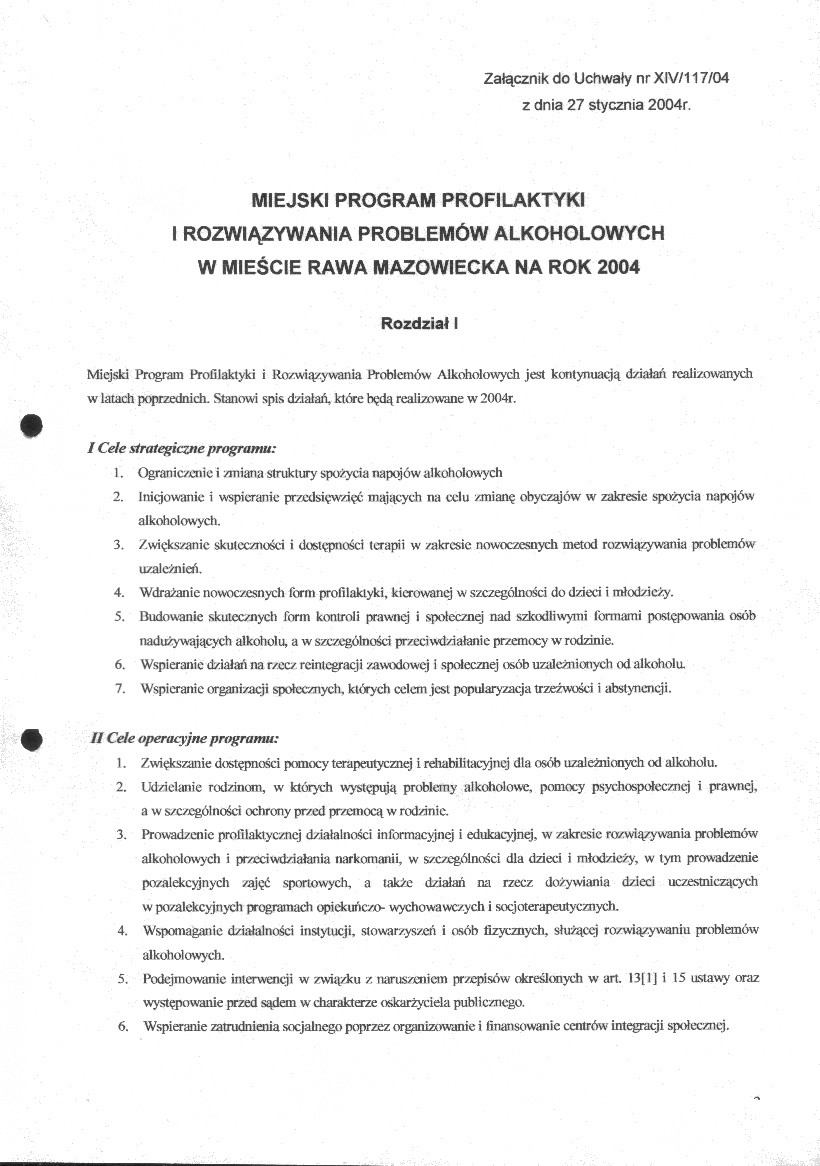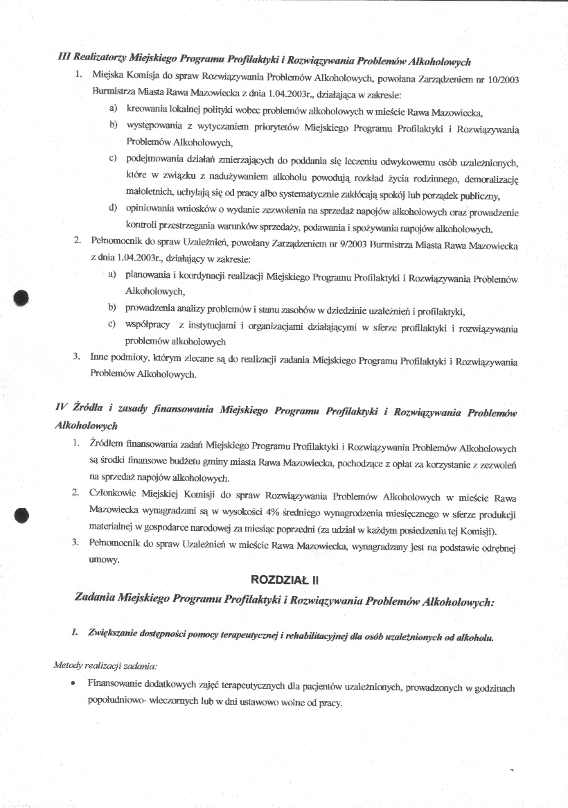 w sprawie Miejskiego Programu Profilaktyki i Rozwiązywania Problemów Alkoholowych w mieście Rawa Mazowiecka na 2004r.