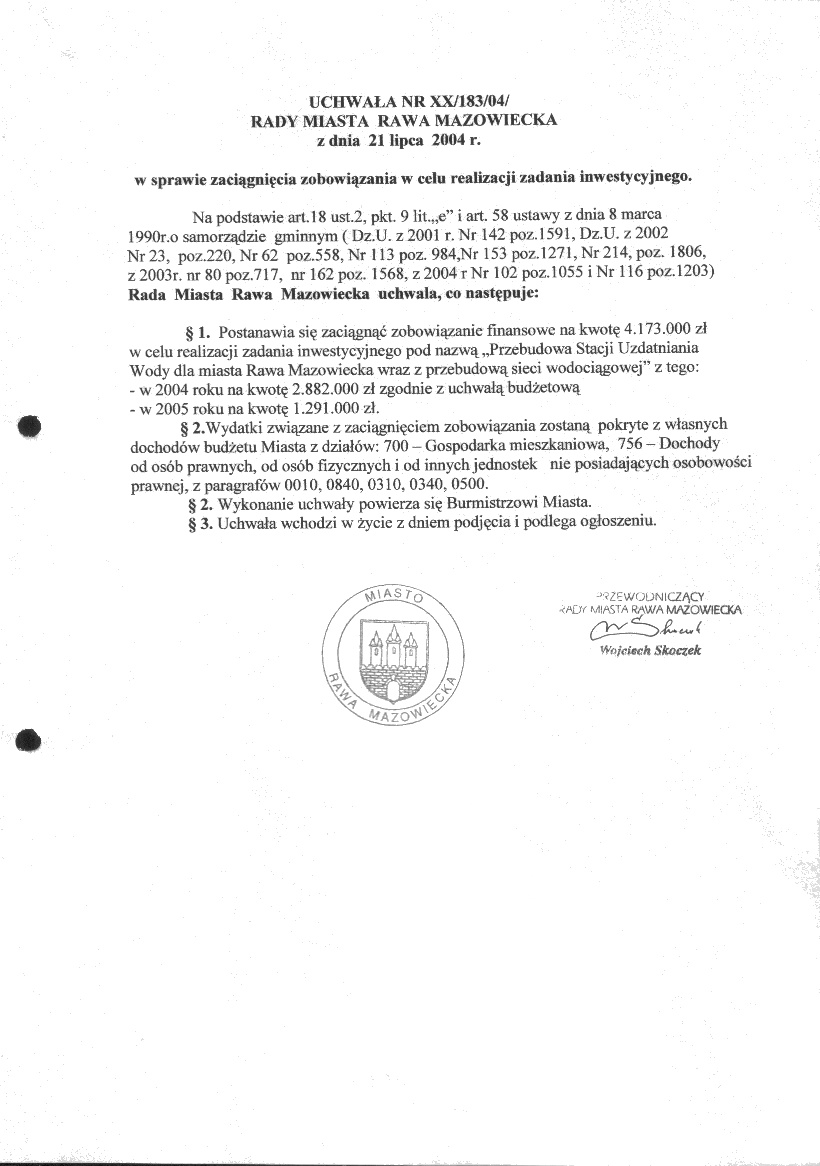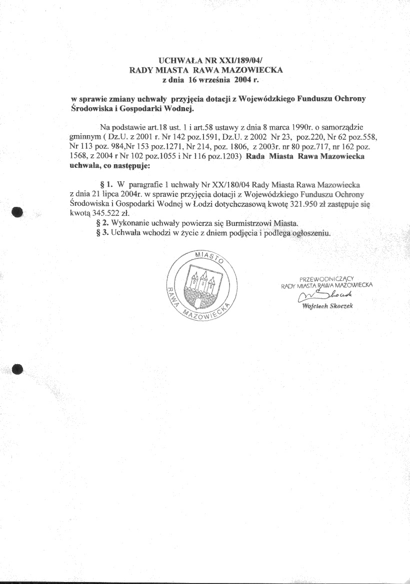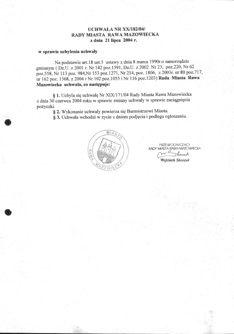 UCHWAŁA NR XX/179/04 z dnia 21 lipca 2004 r. w sprawie zmiany uchwały Nr XLV/410/2002 w sprawie uchwalenia wieloletniego planu inwestycyjnego Miasta Rawa Mazowiecka