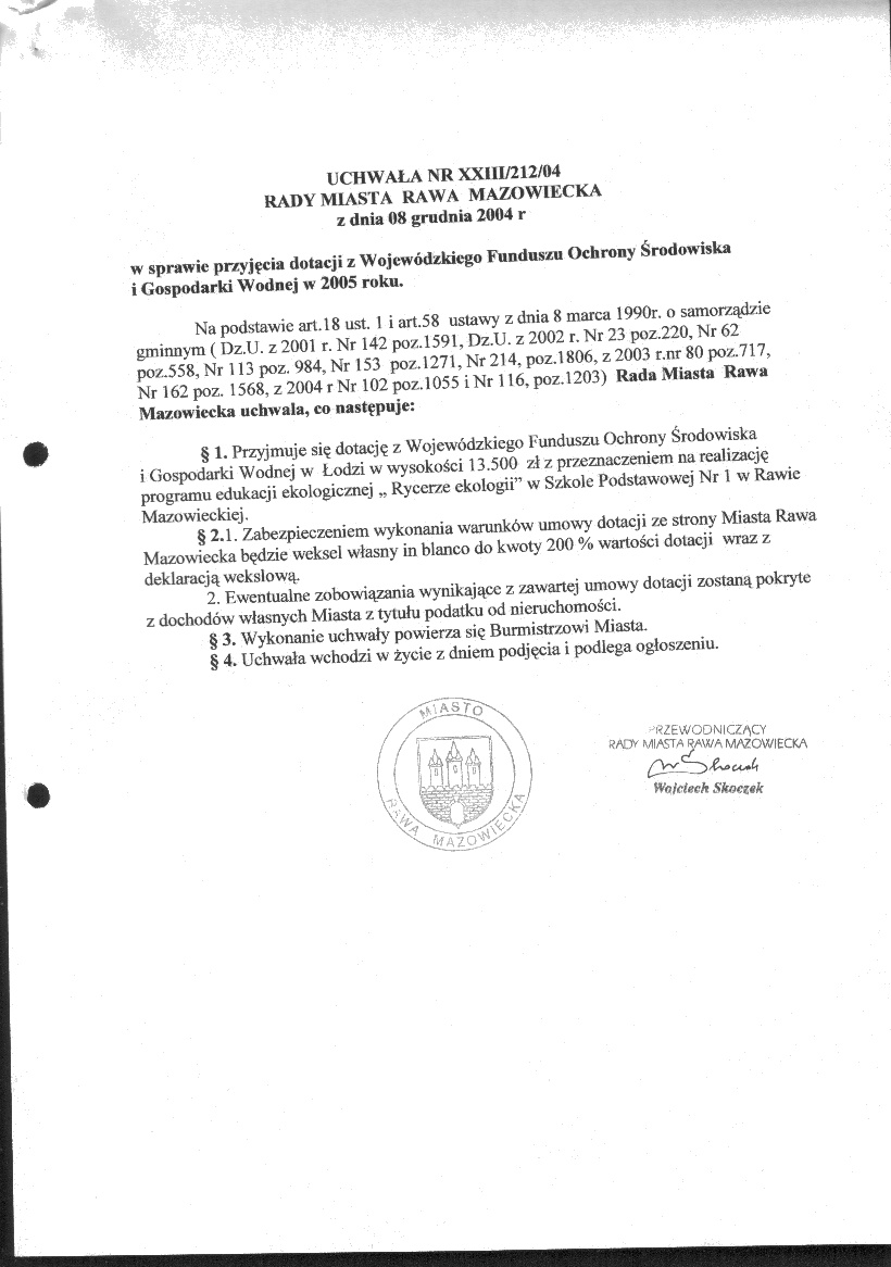 UCHWAŁA NR XXII/194/04 z dnia 9 listopada 2004 r. w sprawie przyjęcia Programu Ochrony Środowiska oraz Planu Gospodarki Odpadami dla Miasta Rawa Mazowiecka