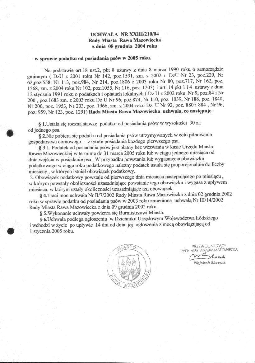 UCHWAŁA NR XXIII/210/04 z dnia 8 grudnia 2004 r. w sprawie podatku od posiadania psów w 2005 roku