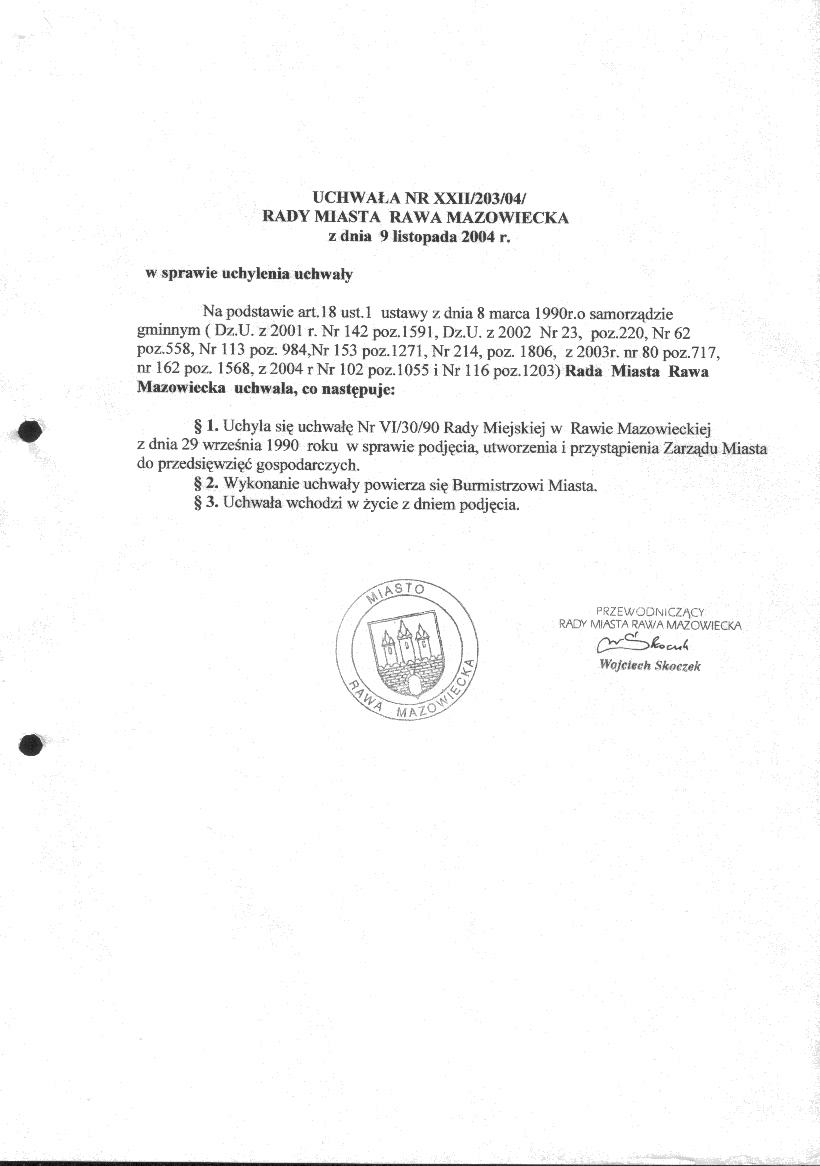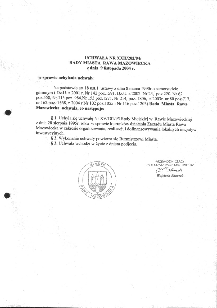 UCHWAŁA NR XXII/192/04 z dnia 9 listopada 2004 r. w sprawie zmiany uchwały Nr XLV/410/2002 w sprawie uchwalenia wieloletniego planu inwestycyjnego Miasta Rawa Mazowiecka