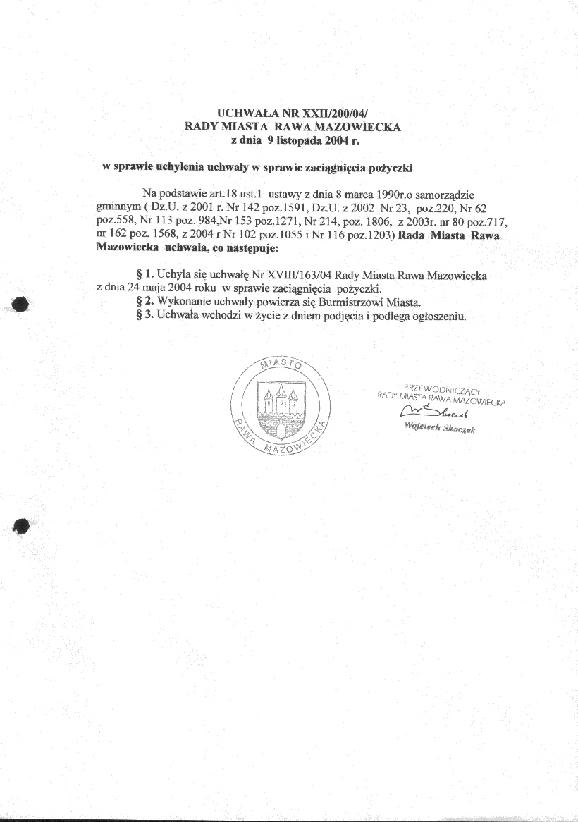 UCHWAŁA NR XXII/200/04 z dnia 9 listopada 2004 r. w sprawie uchylenia uchwały w sprawie zaciągnięcia pożyczki