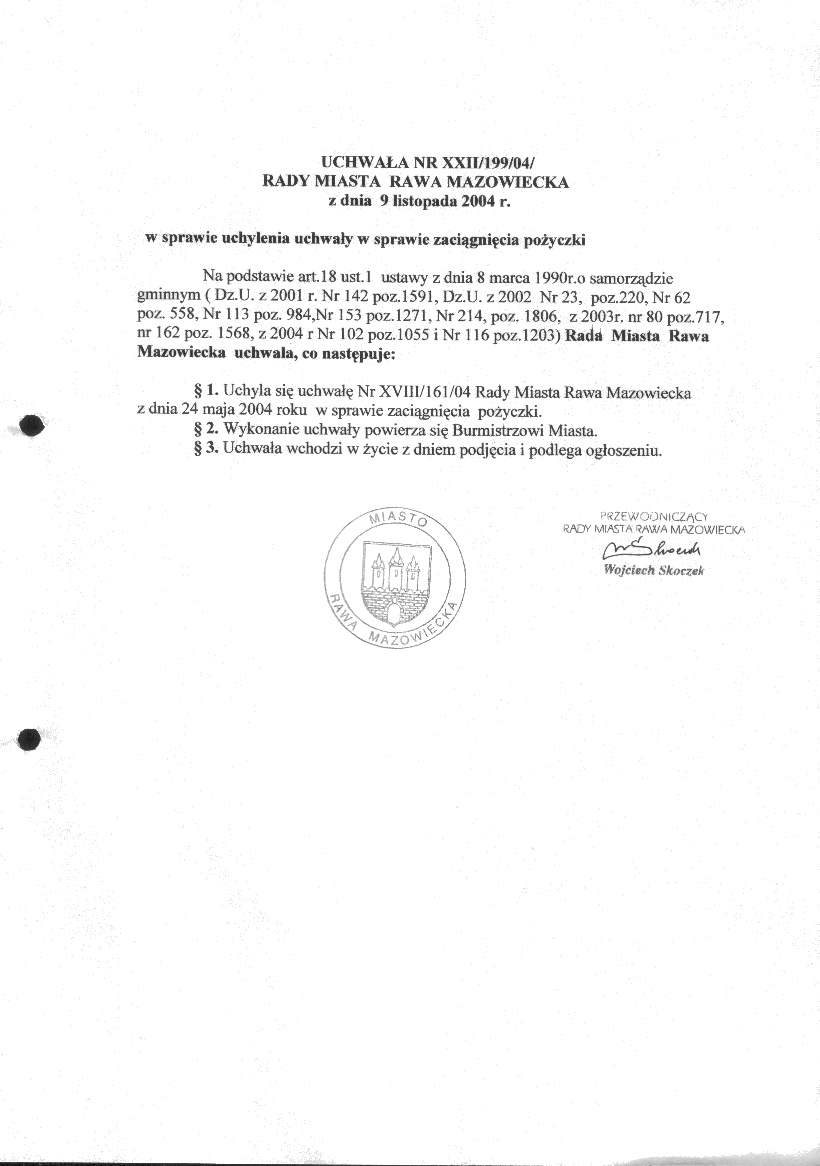 UCHWAŁA NR XXII/199/04 z dnia 9 listopada 2004 r. w sprawie uchylenia uchwały w sprawie zaciągnięcia pożyczki