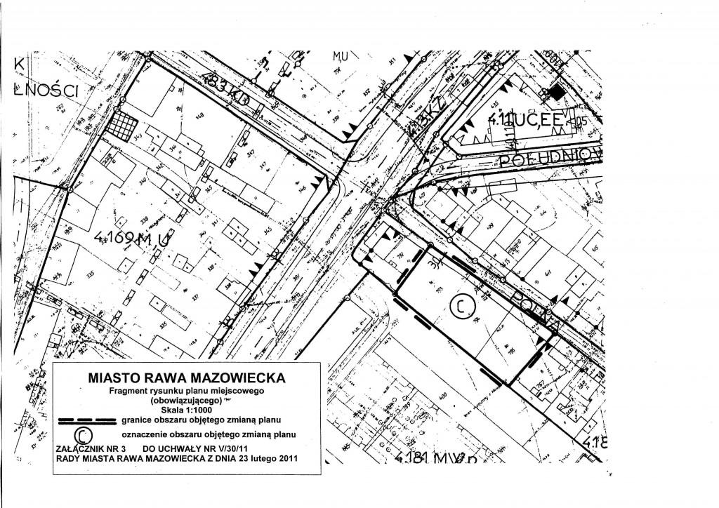 Na podstawie art. 17 pkt 1 ustawy z dnia 27 marca 2003 r. o planowaniu i zagospodarowaniu przestrzennym (Dz. U. Nr 80 poz. 717 z późn zm.) oraz w myśl przepisów art.39 ust.1 pkt 1 Ustawy z dnia 3 października 2008 r. o udostępnianiu informacji o środowisku i jego ochronie, udziale społeczeństwa w ochronie środowiska oraz o ocenach oddziaływania na środowisko (Dz. U. Nr 199 poz. 1227) zawiadamiam o podjęciu przez Radę Miasta Rawa Mazowiecka Uchwały Nr V/30/11 z dnia 23 lutego 2011r. w sprawie przystąpienia do sporządzenia zmiany miejscowego planu zagospodarowania przestrzennego miasta Rawy Mazowieckiej, obszary położone w rejonie ulic: Jerozolimskiej i Białej, Zamkowej i Krzywe Koło, Polnej. Granice obszarów objętych zmianą planu są określone na załącznikach graficznych do w/w uchwały, okazanych w Biuletynie Informacji Publicznej Urzędu Miasta Rawa Mazowiecka. Zmiana planu dotyczy określenia nowych warunków zabudowy na istniejących terenach budowlanych. Zainteresowani mogą składać wnioski do wyżej wymienionej zmiany planu miejscowego. Wnioski należy składać na piśmie do Burmistrza Rawy Mazowieckiej na adres 96-200 Rawa Mazowiecka Pl. Piłsudskiego Nr 5 w terminie do dnia 28 czerwca 2011r. Wniosek powinien zawierać nazwisko, imię, nazwę i adres wnioskodawcy, przedmiot wniosku oraz oznaczenie nieruchomości, której dotyczy.