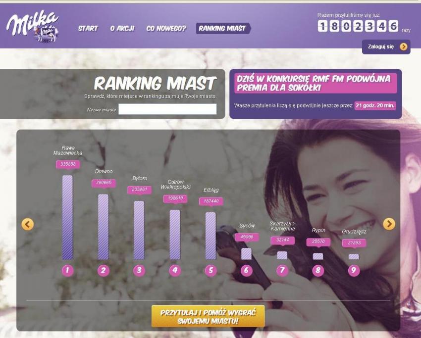 Najmilsze miasto w Polsce otrzyma od Milki nagrodę główną w postaci działań promocyjnych w mediach ogólnopolskich, która zostanie zrealizowana tuż po zakończeniu projektu akcji.