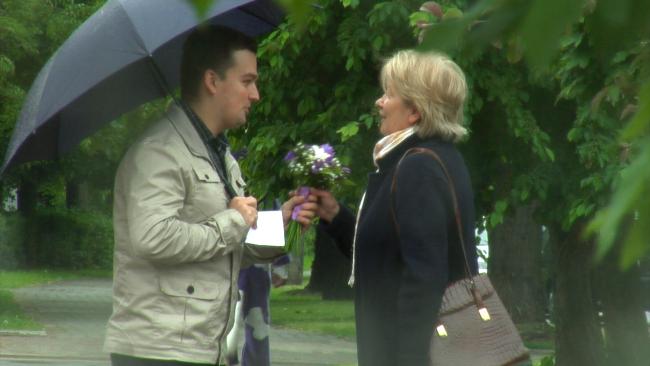 W tej trudnej dla siebie sytuacji chłopak postanowił skorzystać z pomocy przechodniów i przypadkowo napotkanych mieszkańców Rawy prosił, aby weszli za niego do kawiarni. Czy odrobina uprzejmości pomogła spełnić się wielkiej miłości? Oczywiście! Mieszkańcy Rawy nie mieli żadnych oporów z pomocą nieśmiałemu chłopakowi. Z chęcią wchodzili do kawiarni wręczyć kwiaty, a nawet czytali przygotowany przez niego dla dziewczyny wiersz!