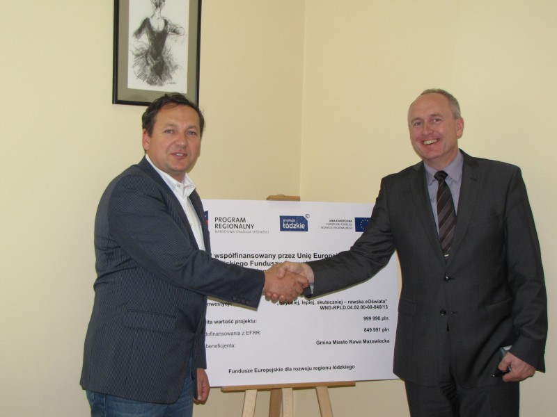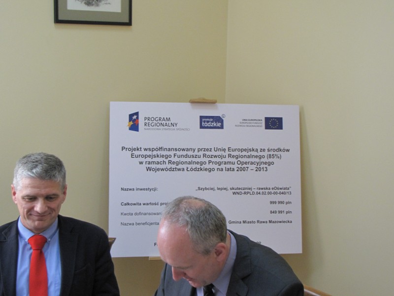 11 czerwca 2015 r. w Urzędzie Miasta Rawa Mazowiecka została podpisana umowa na dostawę sprzętu komputerowego oraz wykonanie sieci bezprzewodowych do budowy w pełni zintegrowanego, nowoczesnego systemu oświatowego wspomagającego zarządzanie, edukację oraz świadczącego elektroniczne usługi w obszarze oświaty w Rawie Mazowieckiej w ramach realizacji projektu „Szybciej, lepiej, skuteczniej – rawska eOświata”, współfinansowanego przez Unię Europejską z Europejskiego Funduszu Rozwoju Regionalnego w ramach Regionalnego Programu Operacyjnego Województwa Łódzkiego na lata 2007 – 2013,Osi Priorytetowej IV: Społeczeństwo Informacyjne, Działania IV.2 E-usługi publiczne, na podstawie umowy o dofinansowanie nr UDA-RPLD.04.02.00-00-040/13-00 z dnia 25 listopada 2014 roku.