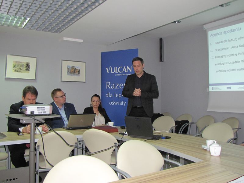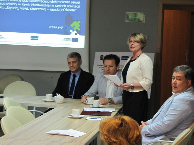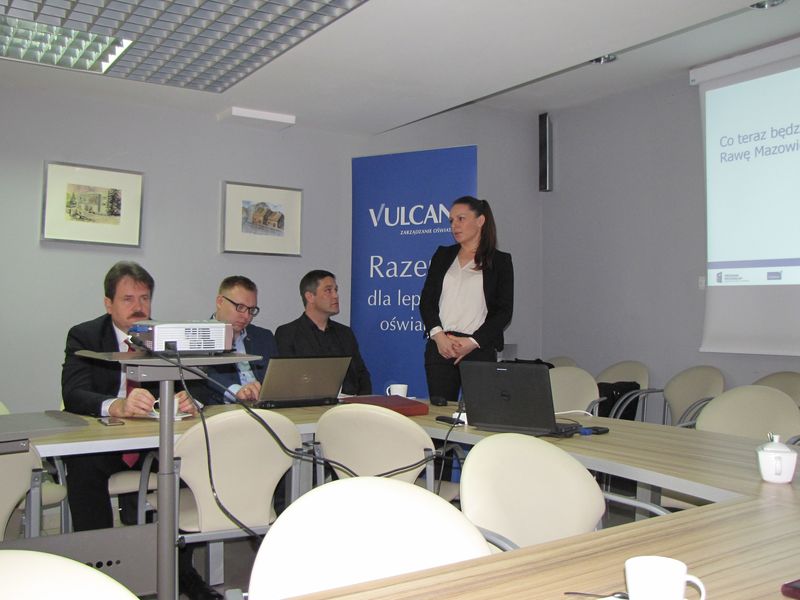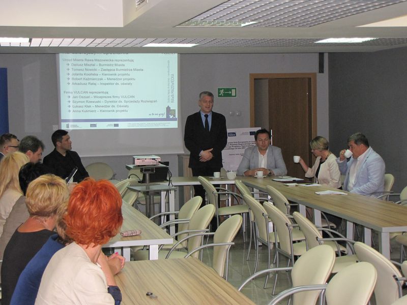 W miniony poniedziałek w Miejskim Domu Kultury w Rawie Mazowieckiej odbyło się spotkanie inaugurujące cykl szkoleń w ramach projektu "Szybciej, lepiej, skuteczniej - rawska eOświata". W spotkaniu udział wzięli przedstawiciele firmy Vulcan: Jan Oszust - Wiceprezes Zarządu Vulcan Sp. z o.o., Anna Kuśmierz - Kierownik Projektu, Szymon Rzewuski - Dyrektor ds. Sprzedaży Rozwiązań, Łukasz Kłak - Menadżer ds. Oświaty. Urząd Miasta Rawa Mazowiecka reprezentowali: Tomasz Nowicki - Zastępca Burmistrza Miasta Rawa Mazowiecka, Jolanta Kosińska - Naczelnik Wydziału Oświaty, Kultury, Zdrowia i Sportu, Arkadiusz Rataj - inspektor ds. Oświaty oraz informatycy: Robert Fedorowicz i Karol Łopatka. Na spotkanie zaproszono również Dyrektora Zarządu Cyfrowa S.A. Wojciecha Wodnickiego, którego firma wyposaży szkoły w sprzęt komputerowy oraz zbuduje sieć WiFi oraz Menadżera Projektu Pana Roberta Kaźmierczaka - Prezesa Zarządu EF Consultancy.