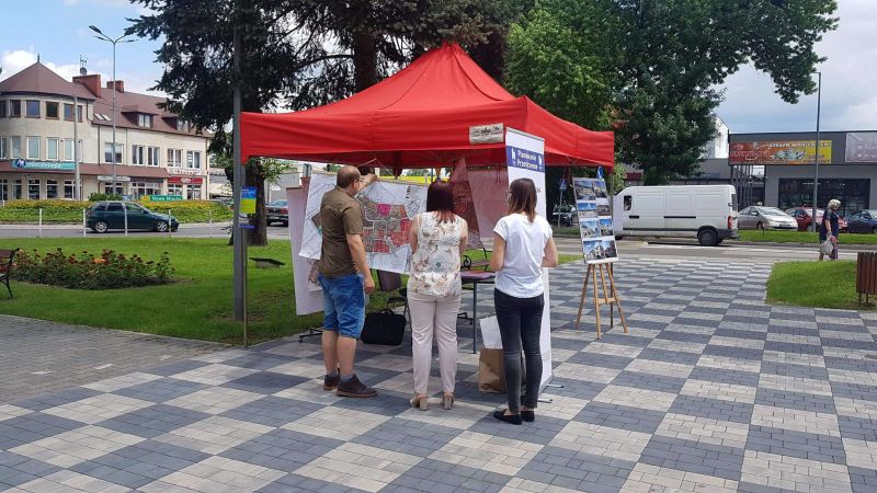 Mieszkańcy zapoznawali się z projektem planu także w punkcie konsultacyjnym stacjonarnym, który był w Urzędzie Miasta oraz w punkcie mobilnym, zorganizowanym przed Miejskim Domem Kultury. Poza sprawdzeniem ustaleń dotyczących przeznaczenia i warunków zagospodarowania swoich działek, mieszkańcy zwracali uwagę na zagadnienia związane ze zbliżającymi się pracami przebudowy placów w ramach rewitalizacji.