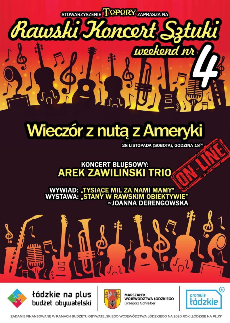 Rawski Koncert Sztuki organizuje stowarzyszenie Topory. Projekt finansowany jest w ramach Budżetu Obywatelskiego Województwa Łódzkiego na 2020 rok „Łódzkie na plus”.