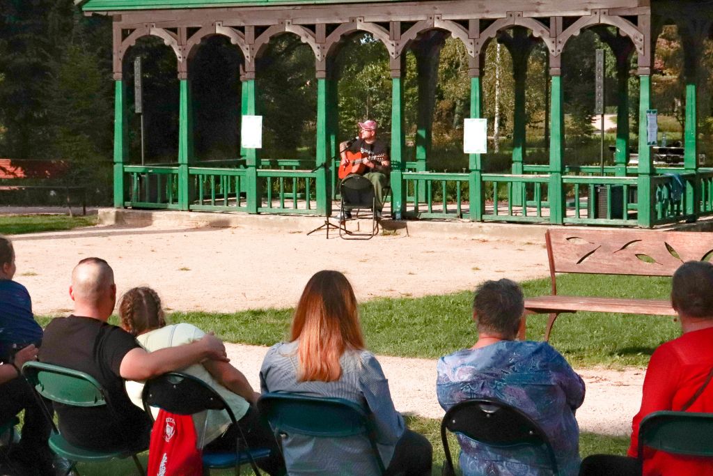 Robert Skrzypek wystąpił w minioną niedzielę w ramach cyklu "Koncertowanie w Altanie". Bard i autor książek z poezją współczesną zaprezentował repertuar oparty o własną twórczość, jak również zaśpiewał kilka wierszy Włodzimierza Wysockiego. Każdy ze słuchaczy znalazł w tym koncercie motywy, które mogły przywołać osobiste refleksje – takie było zresztą zamierzenie artysty.