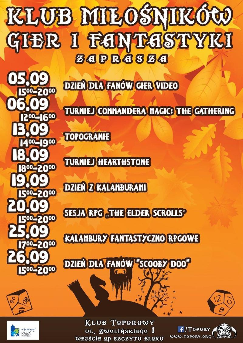 Przygodami psa z popularnej kreskówki zakończy się cykl wrześniowych spotkań w Klubie Toporowym przy ul. Zwolińskiego 1. Członkowie stowarzyszenia przygotowali na weekendy szereg atrakcji związanych z grami i fantastyką. Co tydzień coś innego - jest w czym wybrać. Stowarzyszenie Topory zaprasza.