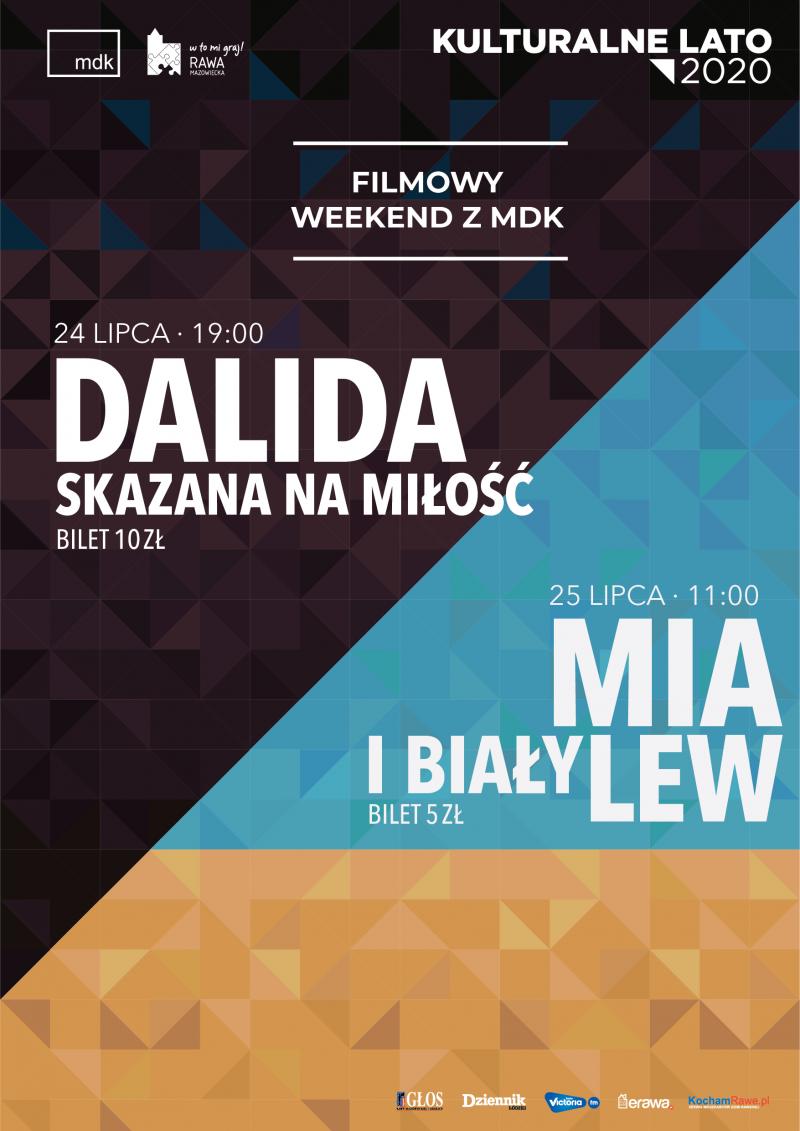 Piosenki Dalidy, mimo upływu lat, wciąż są popularne i chętnie słuchane. Mniej znane jest burzliwe i tragiczne życie pięknej artystki. O nim opowiada film „Dalida – skazana na miłość”. Obraz Lisy Azuleos zostanie wyświetlony w MDK w piątek 24 lipca, w ramach Filmowego Weekendu. Natomiast w sobotę 25 lipca najmłodsi będą mogli obejrzeć „Mię i białego lwa”.