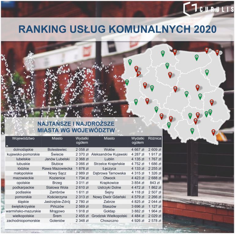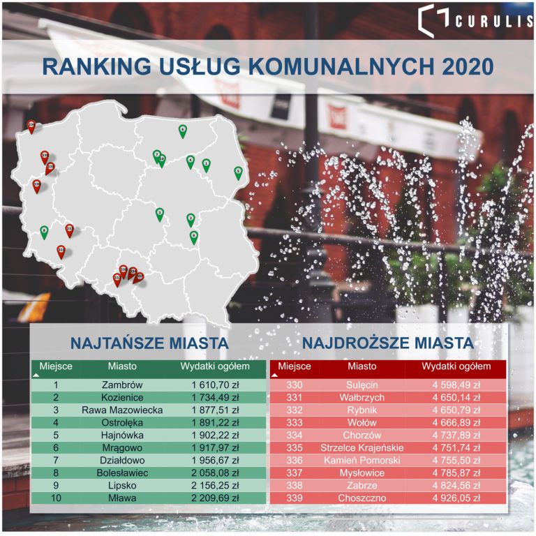 W ogólnopolskim rankingu wzięto pod uwagę opłaty, jakie ponosi przeciętna 4-osobowa rodzina za wodę i odprowadzanie ścieków, odbiór odpadów, korzystanie z komunikacji publicznej, stref płatnego parkowania oraz z tytułu podatku od nieruchomości.