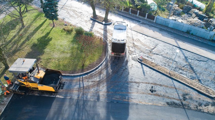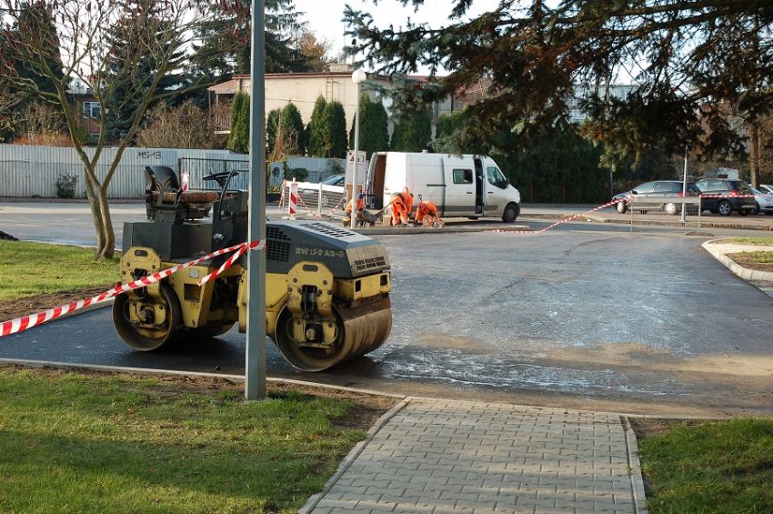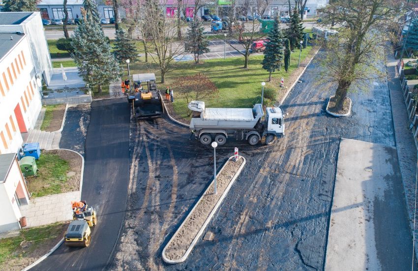 Trwają prace przy zmianie nawierzchni ul. Południowej w bezpośrednim sąsiedztwie Miejskiego Domu Kultury. 1400 m2 nowej nawierzchni mineralno-bitumicznej, częściowa wymiana krawężników oraz uporządkowane miejsca parkingowe to efekt trwających jeszcze prac.