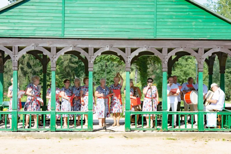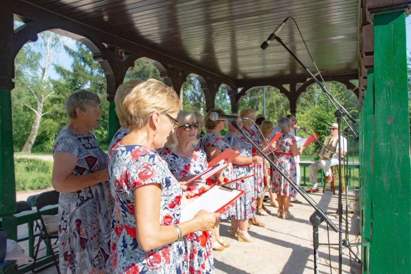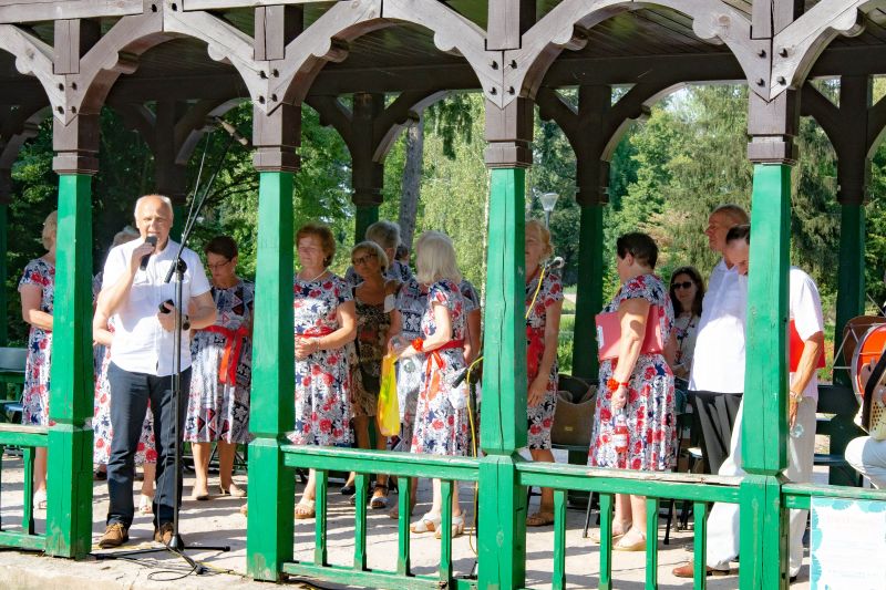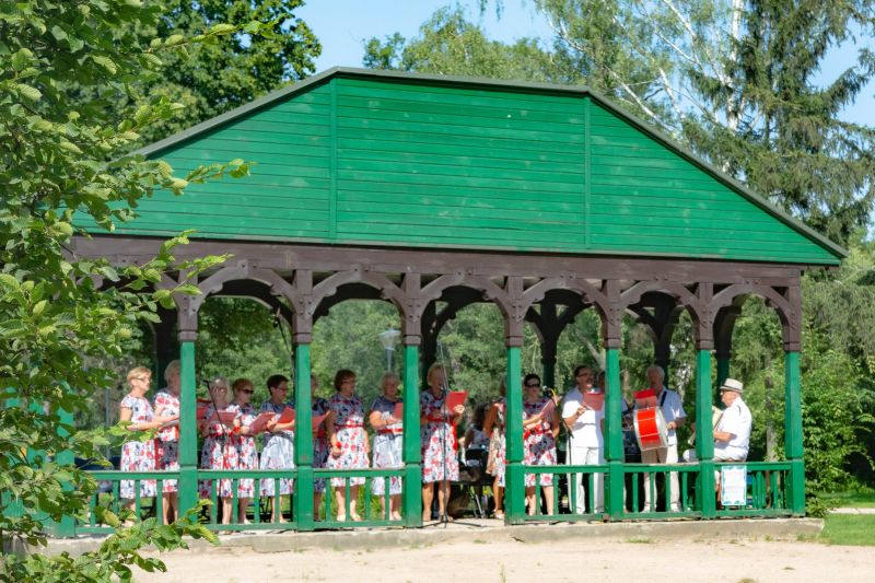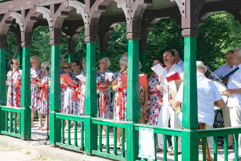 Słoneczny dzień i rozśpiewani seniorzy z rawskiego oddziału Polskiego Związku Emerytów, Rencistów i Inwalidów - tak wyglądało wczorajsze niedzielne popołudnie w rawskim parku.