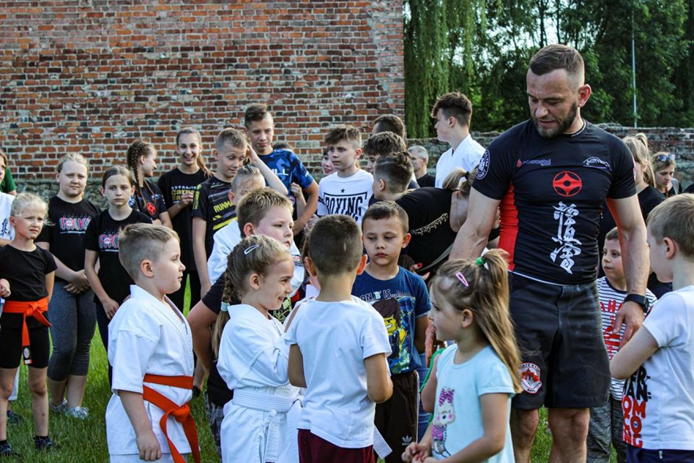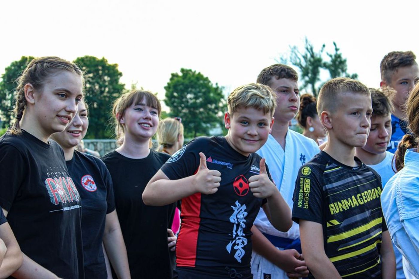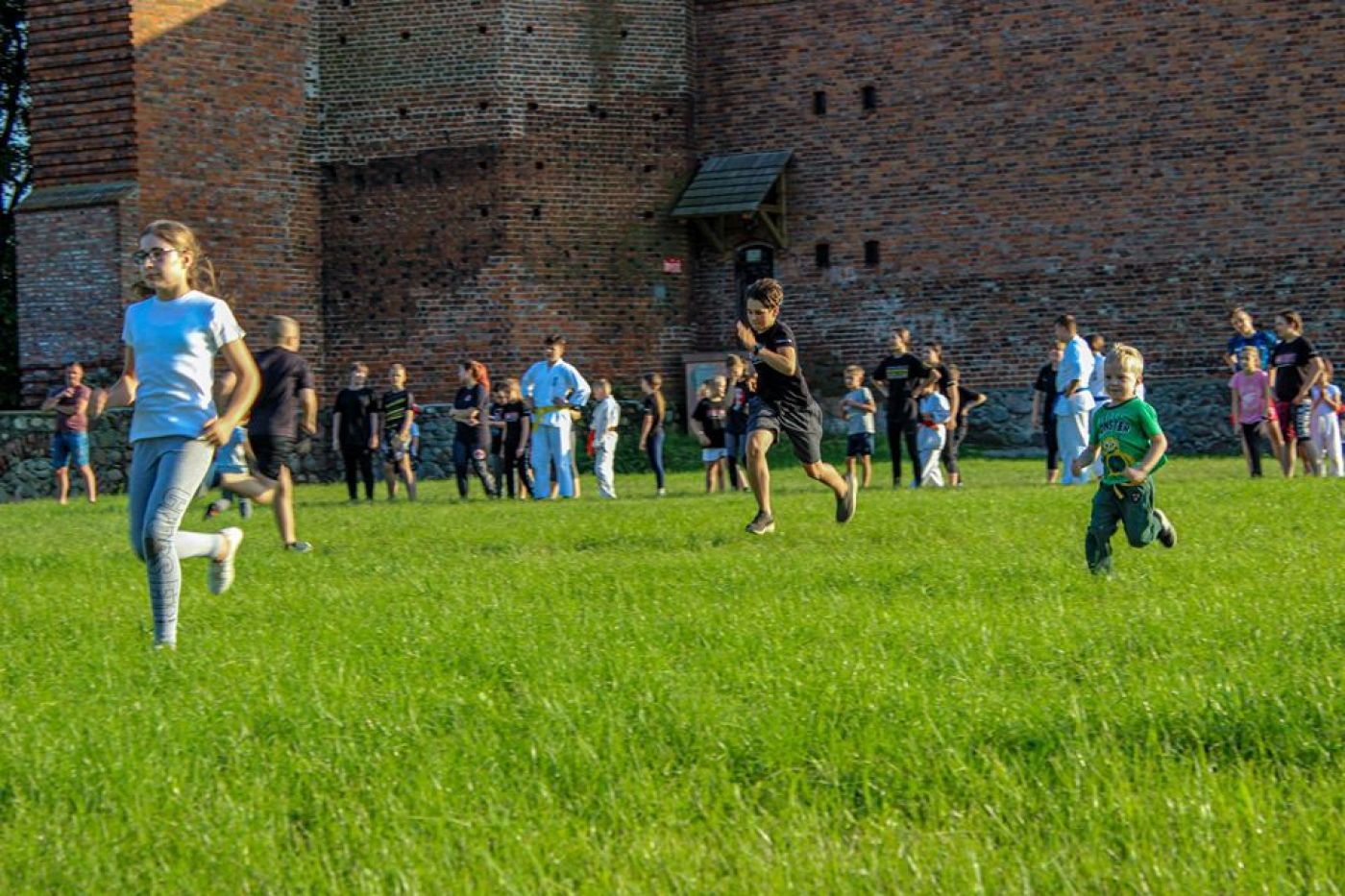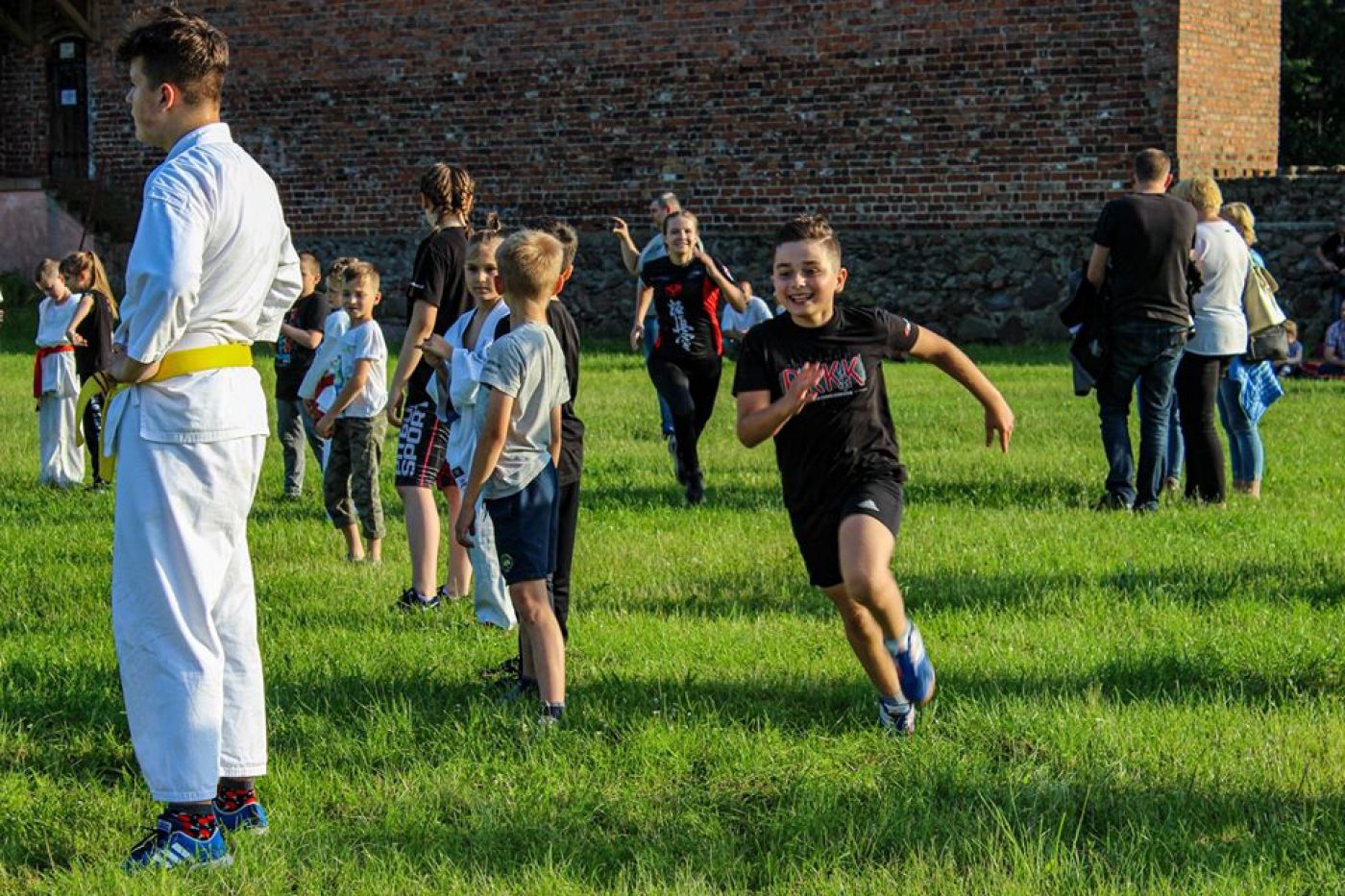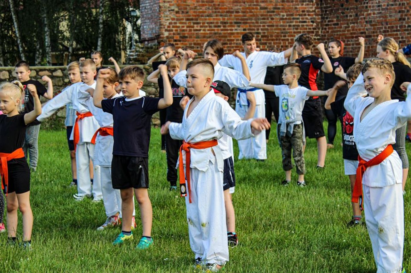 Tuż przed wyruszeniem na obóz, karatecy przeprowadzili na dziedzińcu rawskiego zamku plenerowy trening. To już tradycja w wykonaniu członków klubu karate i ich przyjaciół. Siedemdziesięcioro senpai ćwiczyło pod czujnym okiem sensei Marcina Kopczyńskiego, biorąc przy okazji udział w akcji charytatywnej. Po solidnym wysiłku była też nagroda – pyszna pizza.