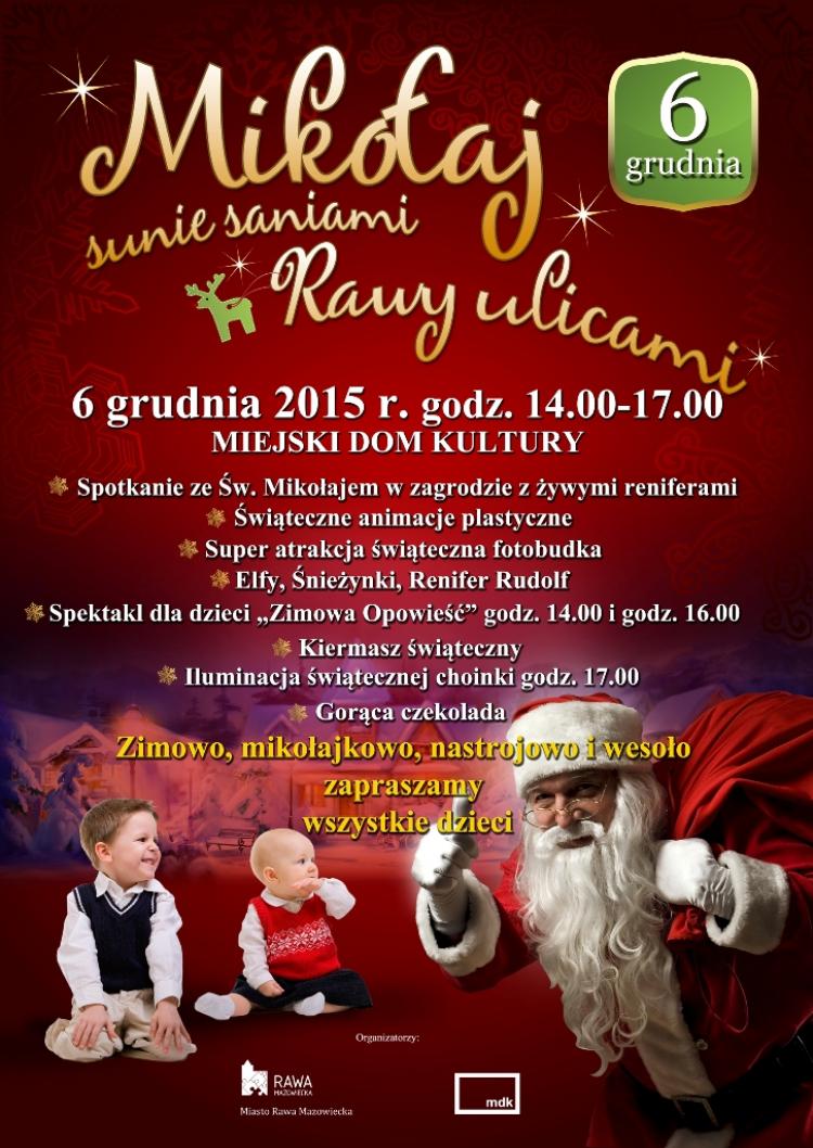 „Mikołaj sunie saniami Rawy ulicami” - 6 grudnia 2015 r. odbyła się czwarta edycja rawskich mikołajek. Św. Mikołaj przyjechał zaprzęgiem reniferów i czekał na wszystkie dzieci. Po spotkaniu ze św. Mikołajem maluchy udały się do świata baśni. „Zimowa opowieść” przedstawiona przez aktorów Teatru Kuffer w rozśpiewany i zabawny sposób wprowadziła najmłodszych w zimowy czas mikołajek i przygotowań do świąt.