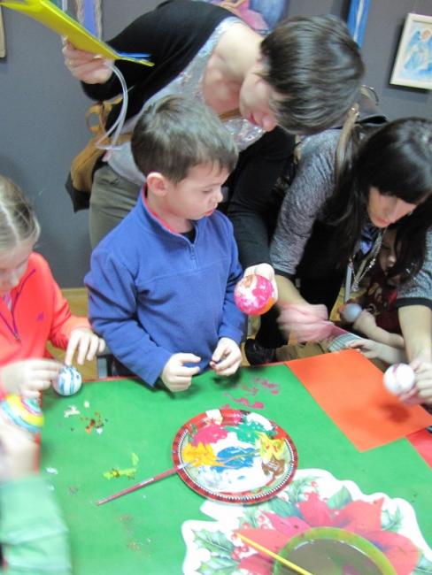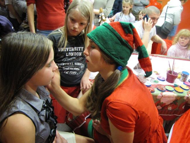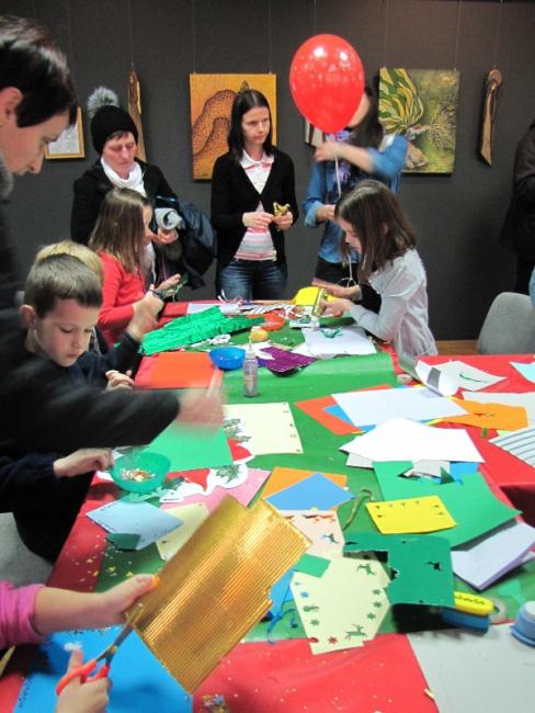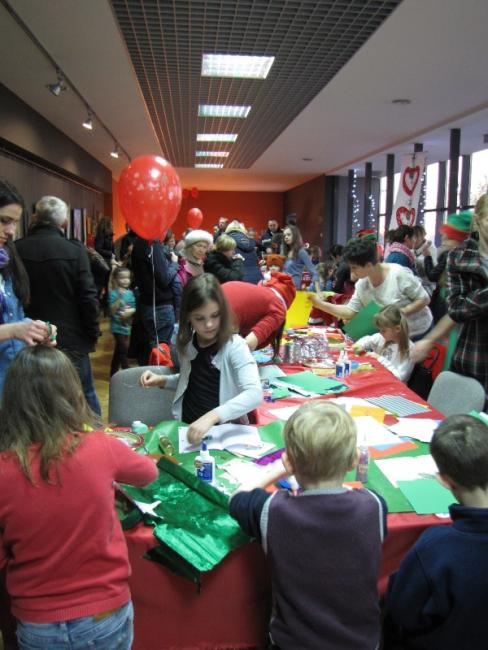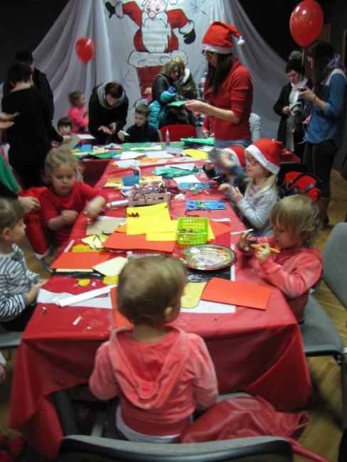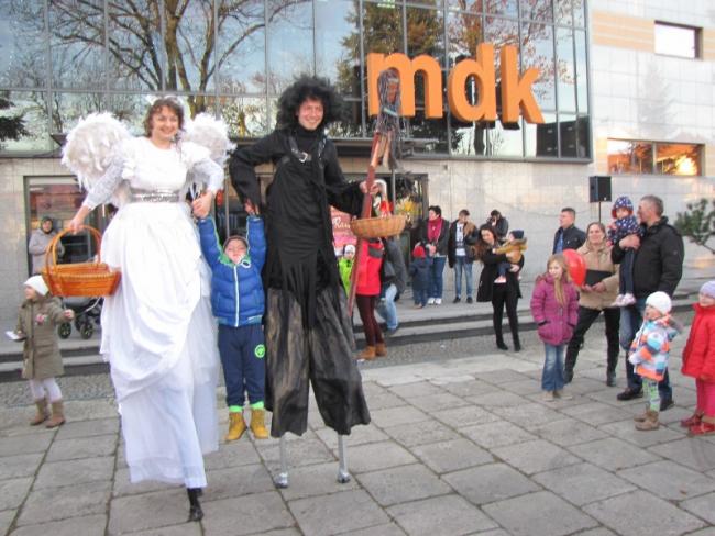 Przed wejściem do domu kultury gości witały postacie na szczudłach - Anioł i Diabeł - które pełniły funkcje animatorów. Angażowały one dzieci do wspólnej zabawy i dbały o ich dobry nastrój. Ogromnym powodzeniem cieszyły się wspólnie wykonywane ozdoby świąteczne. Namalowana ręką dziecka bombka czy oryginalna kartka świąteczna to wzruszająca pamiątka na wiele lat.