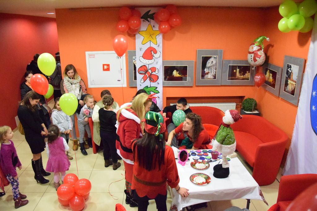Przed wejściem do domu kultury gości witały postacie Anioła i Diabła, Renifera Rudolfa w świątecznym kubraczku i Kubusia Puchatka, które angażowały dzieci do wspólnej zabawy i dbały o ich dobry nastrój. Ogromnym powodzeniem cieszyły się wspólnie wykonywane ozdoby świąteczne. Przy użyciu prostych materiałów można było stworzyć postacie, które mogą służyć jako kukiełki lub ozdoby świąteczne. Fantazyjne kształty, dowolność form i kształtów pozwoliła dzieciom i rodzicom wykazać się w swojej twórczości.