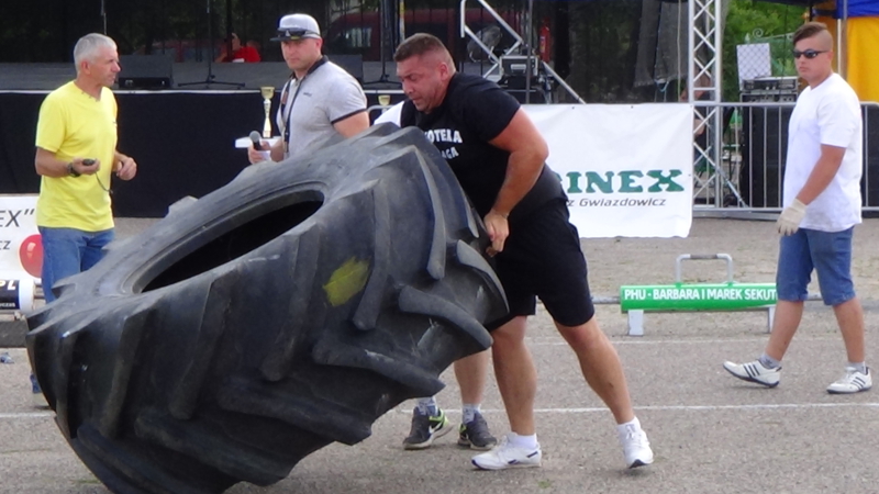 Konkurencja wiązana załadunek 4 elementów na platformę i przetaczanie 350 kg opony 6 razy na czas 75 s.