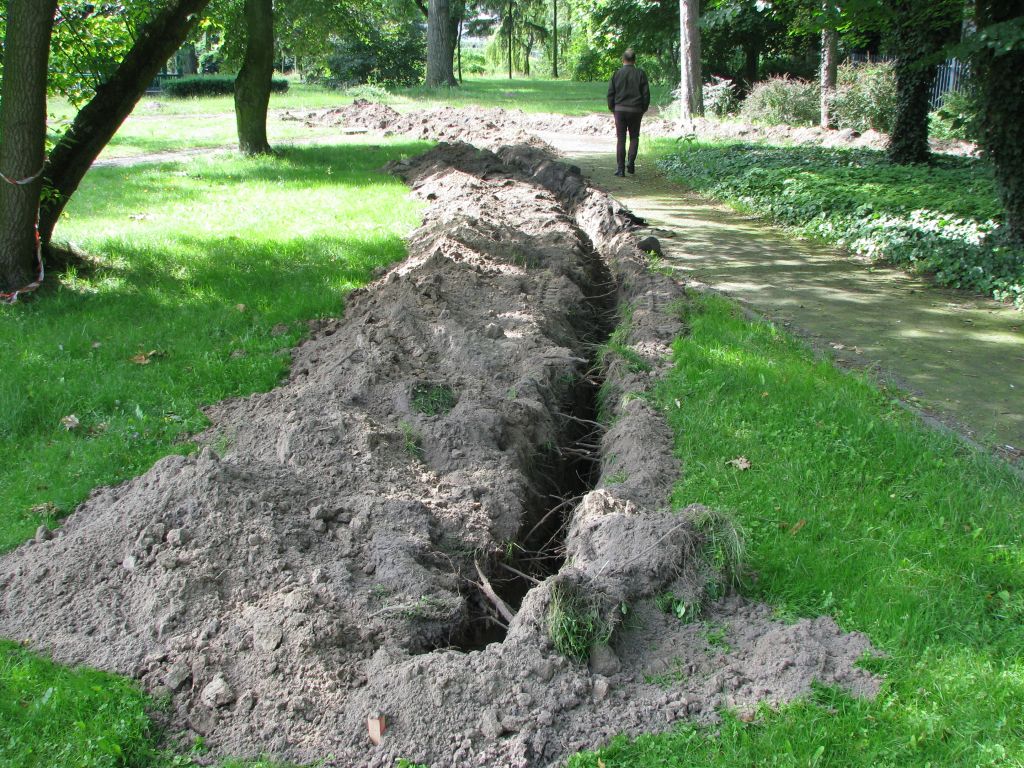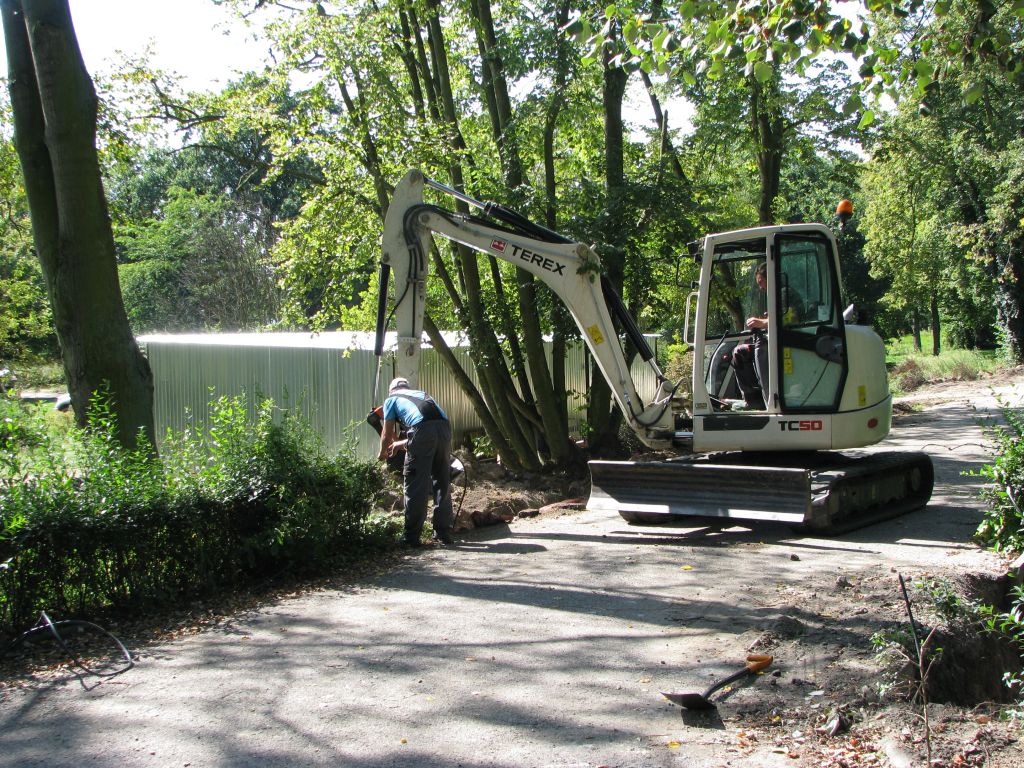 Tempa nabierają także roboty w parku. Po etapie demontażu małej architektury oraz słupów oświetleniowych, przeprowadzono prace ziemne, polegające na budowie linii kablowej oświetlenia i monitoringu. Do końca zbliżają się roboty pomiarowe, niezbędne m.in. do wytyczenia nowego układu ścieżek. Jesienią rozpoczną się natomiast prace pielęgnacyjne związane z drzewostanem oraz roboty związane z wykonaniem podbudowy dla nowych alejek parkowych.
