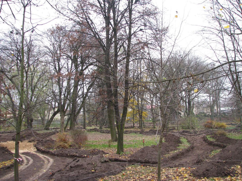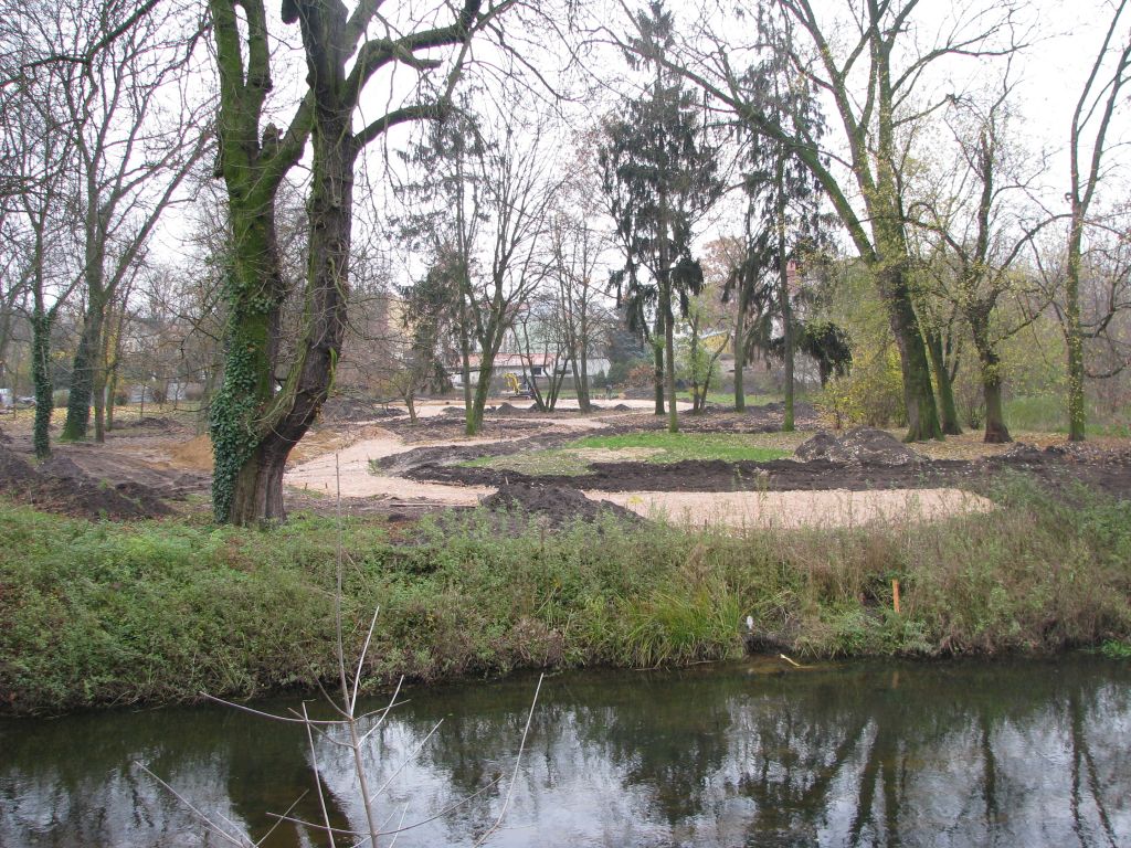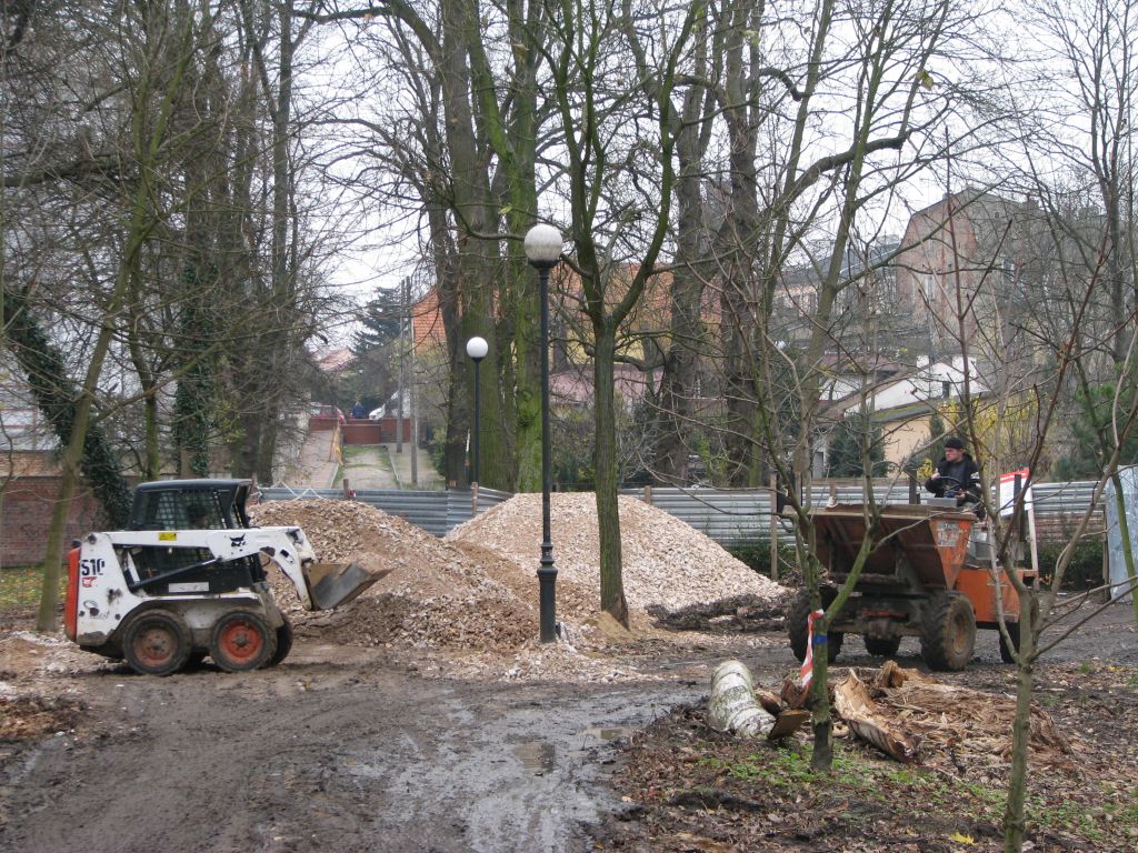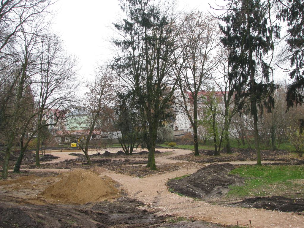 W ostatnich tygodniach w parku wykonano duży zakres prac. Coraz bardziej czytelny staje się zabytkowy układ kompozycyjny parku. Jego elementem jest sieć alejek, która swoim kaligraficznym charakterem, zwłaszcza w części południowo-zachodniej, nawiązuje do secesji. Wykonano już koryta pod alejki i układane są stopniowo warstwy konstrukcyjne nawierzchni. Wzdłuż rzeki Rawki poprowadzono ścieżkę rowerową, która jest kontynuacją ścieżki biegnącej od Zalewu Tatar. Przygotowywany jest również teren pod budowę placu zabaw, przystosowanego do potrzeb dzieci niepełnosprawnych.