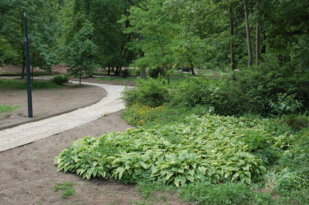 - wzmacnia funkcję rekreacyjną parku, pozwalając spacerującym na dotarcie do każdego zielonego zakątka. Alejki wykonywane są z kruszyw naturalnych, a więc mamy do czynienia z powierzchnią częściowo czynną biologicznie i co ważne, adekwatną do zabytkowych obiektów ogrodowych.
