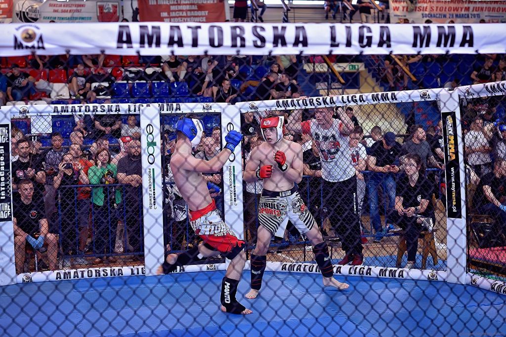 Natomiast w Sochaczewie odbyła się 132. edycja Amatorskiej Ligi MMA, która była zarazem Pucharem Polski MMA 2017. Rawski Klub KK reprezentowało 3 zawodników. Na macie stanęli Piotr Czyrka, Jakub Klasztorny i Adrian Bartosiński. Każdy z nich jest już medalistą tej obecnie najmocniejszej ligi mieszanych sportów walki w Polsce. Piotrek i Kuba wystartowali w kategorii Junior do 70 kg. Nasi wojownicy walczyli znakomicie, niestety brakowało im chwilami zimnej krwi. Kuba dopiero po dogrywce musiał uznać wyższość swojego rywala, zaś Piotrek, po pierwszym zdecydowanym zwycięstwie, w kolejnej walce uległ przeciwnikowi. Na koniec pozostał Adrian Bartosiński, nasz najbardziej utytułowany zawodnik. Startował w kategorii Senior do 84 kg. Adrian po raz kolejny udowodnił swoją klasę, Stoczył cztery pojedynki, z których trzy wygrał - przed czasem lub z wyraźną przewagą punktową. W finale spotkał się z Gerardem Bąkiem z zaprzyjaźnionego klubu Brawler FC Końskie. Po pięknej i ciężkiej walce Adrian został srebrnym medalistą Mistrzostw Polski MMA 2017. Obecnie RKKK zajmuje 44. miejsce na 147 klubów. Jest duża szansa na podwyższenie lokaty, bo przed naszymi wojownikami jeszcze kilka występów do końca roku. Opiekunem teamu i trenerem prowadzącym jest Adrian Bajan, zaś wspierającym Marcin Kopczyński. Wszystkim gratulujemy postawy, a Adrianowi srebrengo medalu.