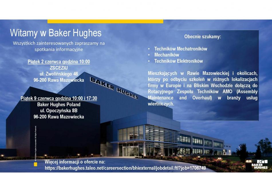 Firma Baker Hughes poszukuje do pracy mechaników, techników mechatroników i techników elektroników. Szczegóły oferty zostaną przedstawione na spotkaniu, organizowanym w Rawie w najbliższy piątek 9 czerwca. Więcej informacji na ten temat na plakacie oraz pod linkiem: https://bakerhughes.taleo.net/careersection/bhiexternal/jobdetail.ftl?job=1706749