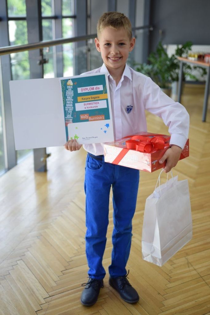 Zwycięzcą konkursu został Kacper Sagan uczeń klasy IIIc ze Szkoły Podstawowej nr 1 w Rawie Mazowieckiej. Oprócz nagrody rzeczowej Kacper otrzymał również tytuł Mały Burmistrz Miasta Rawa Mazowiecka 2017 oraz fotel burmistrza miasta w dniu 1 czerwca. Laureatowi konkursu składamy serdeczne gratulacje.
