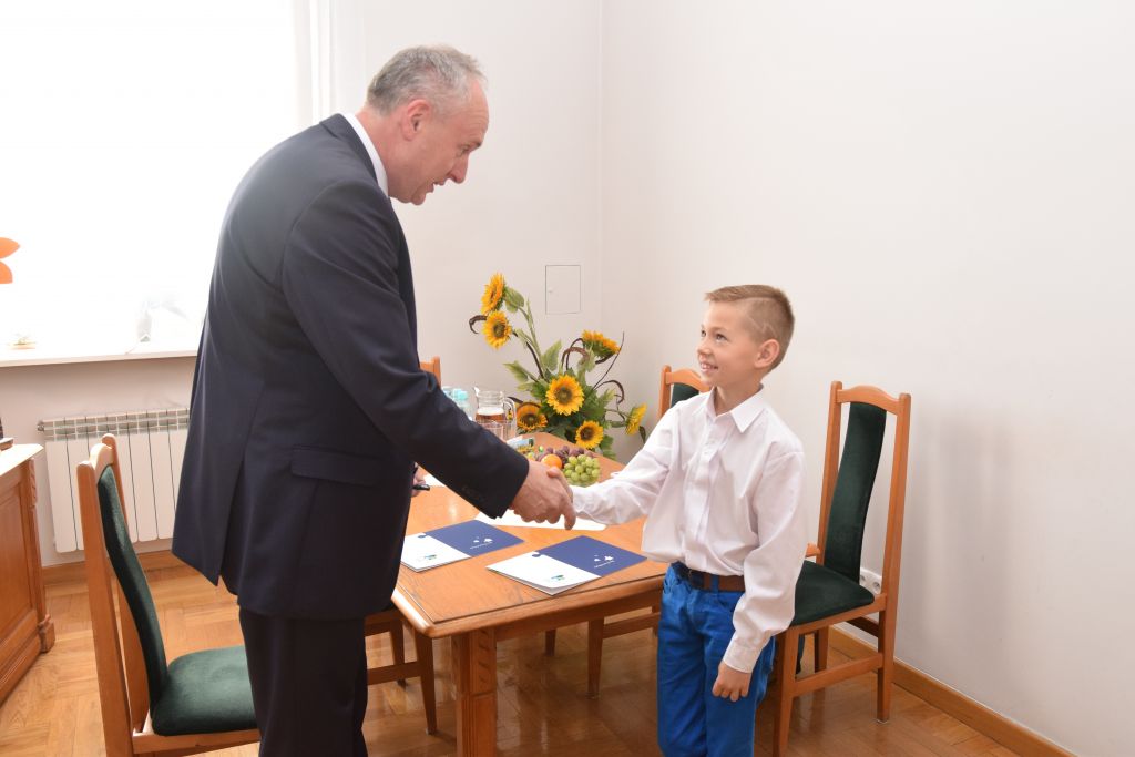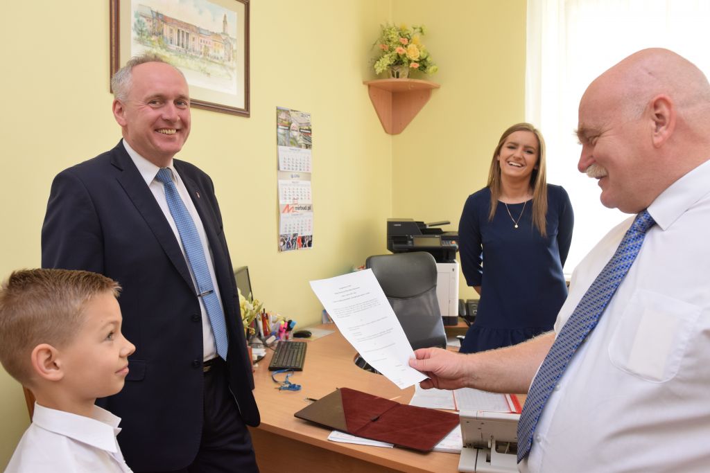 Zwycięzca konkursu „Mały Burmistrz Miasta Rawa Mazowiecka” Kacper Sagan, uczeń klasy IIIc Szkoły Podstawowej nr 1 w dniu dzisiejszym urzędował w miejskim ratuszu. Chwila rozmowy z burmistrzem Dariuszem Misztalem, podpisanie protokołu przekazania władzy, zapoznanie się z zakresem pracy wydziałów Urzędu Miasta, tak rozpoczęło się urzędowanie Małego Pana Burmistrza.