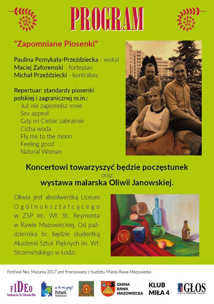 2 grudnia odbędzie się w siedzibie fundacji Fideo przy ulicy Miłej 4 wyjątkowy wieczór. Będzie występować trójka wybitnych artystów: Zbigniew Nowosadzki malarz, Barbara Malcolm skrzypaczka i Piotr Matywiecki poeta. Piotr Matywiecki, jeden z najwybitniejszych poetów współczesnych zgodził się przyjechać do Rawy i poprowadzić wieczór autorski, podczas którego recytacjom wierszy będzie towarzyszyć muzyka w wykonaniu Barbary Malcolm znanej już w Rawie skrzypaczki.