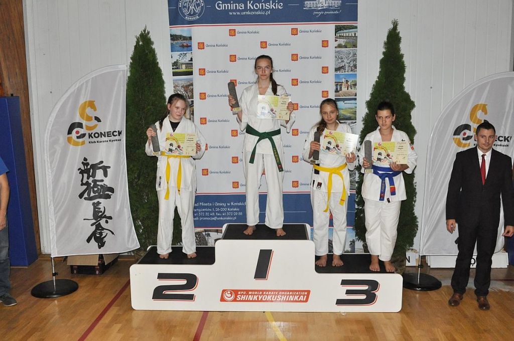 Zbyszek Pacho opowiada o turnieju: Rawski Klub KK reprezentowało sześciu zawodników. W sumie wystąpiło ponad 200 karateków. Rawscy karatecy wypadli bardzo dobrze, zajmując miejsca w pierwszych piątkach w swoich kategoriach, w których było średnio około 20 zawodników. Najlepiej zaprezentowali kata i stanęli na podium Antonina Pacho – srebrny medal i Adam Kaźmierczk - brązowy medal. Ponadto : Martyna Gasińska - czwarte miejsce, Katarzyna Pacho - piąte miejsce, Mikołaj Sitarek - czwarte miejsce, Bartłomiej Słomka - czwarte miejsce. Na szczególne wyróżnienie zasługuje Marek Gasiński, który zadebiutował na Świętokrzyskiej Lidze w kategorii kumite Masters +35 Open i po pięknych walkach zajął trzecie miejsce. Gratulacje dla naszych zawodników i Sensei Marcina Kopczyńskiego za znakomite przygotowanie swoich podopiecznych.
