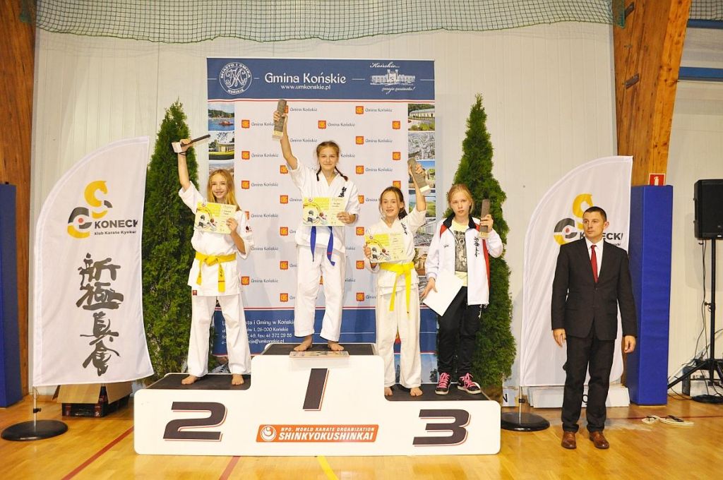 Ponad 350 zawodników z kilkudziesięciu ośrodków z całej Polski 19 listopada wzięło udział w IV Ogólnopolskim Turnieju Karate Kyokushin o Puchar Ziemi Koneckiej w Końskich. Rawski Klub KK reprezentowało 22 karateków, którzy zdobyli siedem medali: dwa złote, dwa srebrne i trzy brązowe co dało mu miejsce w pierwszej dziesiątce klasyfikacji generalnej zawodów na trzydzieści cztery kluby. Rawscy medaliści to: ZŁOTE MEDALE - Emilia Czapnik, Adam Kalarus, SREBRNE MEDALE - Lena Szymczak, Katarzyna Pacho, BRĄZOWE MEDALE - Martyna Berezowska, Bartosz Milczarek, Adam Kaźmierczak. Gratulujemy.