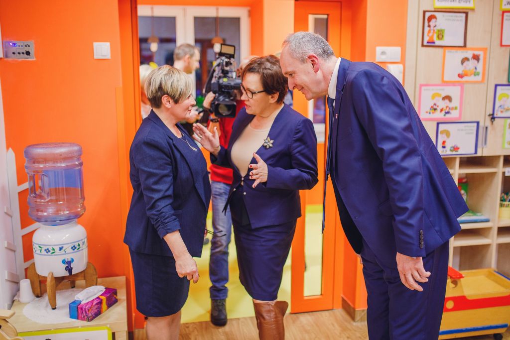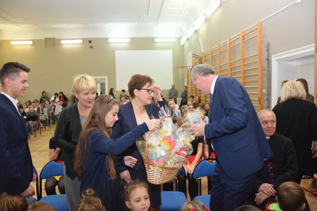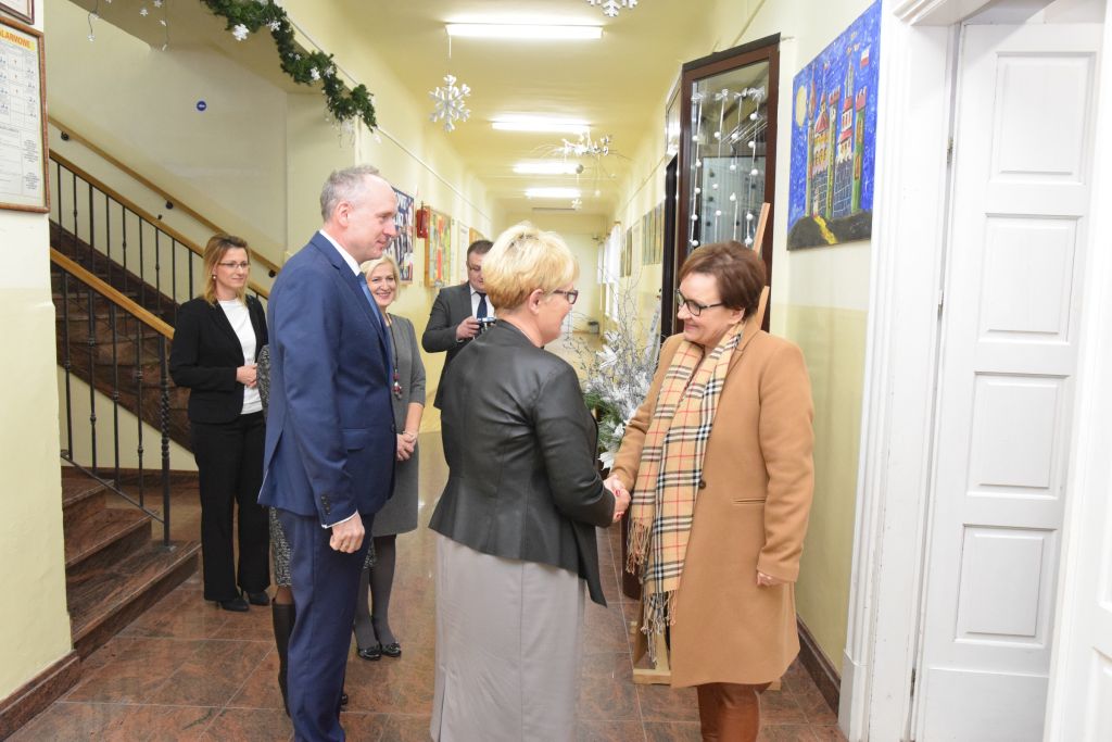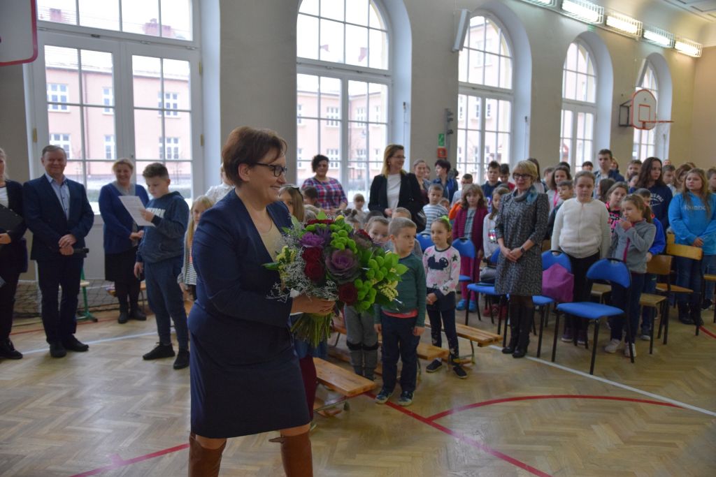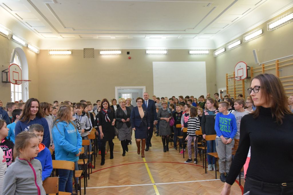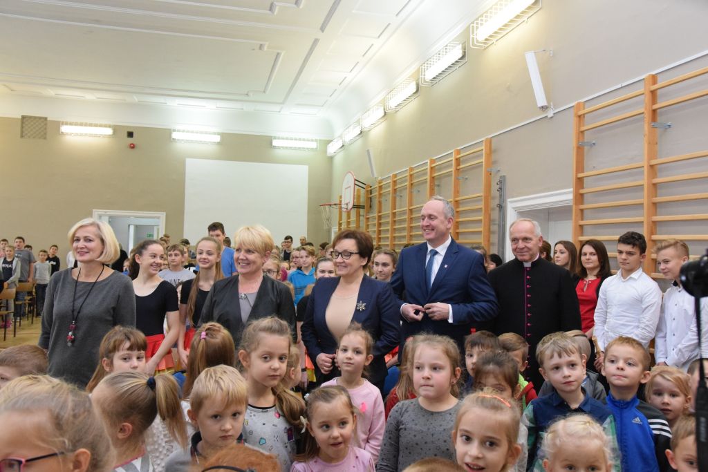Pani Anna Zalewska Minister Edukacji Narodowej, przed otwarciem przedszkola, wizytowała również w Szkole Podstawowej nr 1. Wzięła udział w programie przygotowanym przez uczniów szkoły, a następnie zwiedziła zaplecze dydaktyczno-wychowawcze.