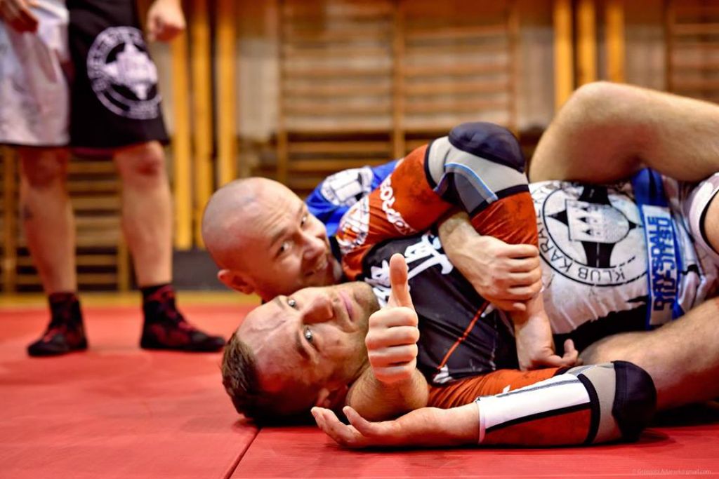 Trzygodzinny trening składał się z dwóch etapów MMA, czyli walka w stójce z wejściami w nogi oraz BJJ czyli praca w parterze. Marcin w bardzo przystępny, a zarazem profesjonalny sposób tłumaczył zebranym proponowane techniki, kierując się zasadą - „w prostocie tkwi siła”. Naprawdę dobry i mocny trening, znakomity prowadzący ze wspaniałym darem przekazania swoich umiejętności. Nie pozostaje nic innego jak szlifować je teraz pod okiem naszych trenerów, Marcina i Adriana.