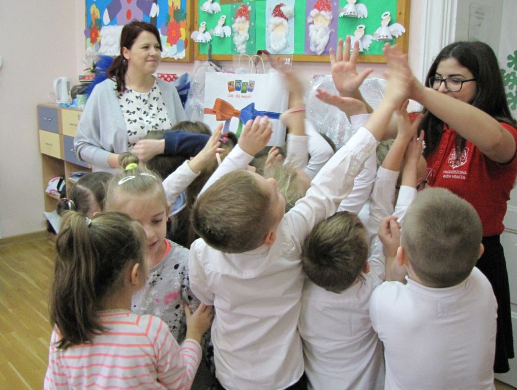 Dzisiaj klasa, która została zwycięzcą facebookowego konkursu bożonarodzeniowego „Klasowe drzewko świąteczne" została nagrodzona przez przedstawicieli Młodzieżowej Rady Miasta.