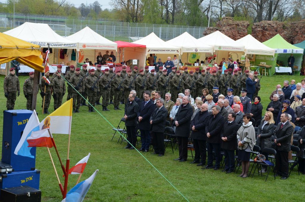 W środę 3 maja uroczyście obchodziliśmy 226 rocznicę uchwalenia Konstytucji 3 Maja. Uroczystości rozpoczęły się wprowadzeniem sztandarów jednostek organizacyjnych z terenu miasta i powiatu rawskiego. Gościliśmy również asystę honorową i sztandar 7 dywizjonu lotniczego z Nowego Glinnika. Uroczystą Mszę Św. w intencji ojczyzny celebrowali proboszczowie naszych rawskich parafii: dziekan Bogumił Karp, ojciec Jacek Wróblewski oraz ksiądz Konrad Świstak. Po mszy licznie zgromadzeni mieszkańcy wysłuchali apelu pamięci odczytanego przez porucznika Pawła Sowę i po oddaniu salwy honorowej, asysta honorowa 7 dywizjonu lotniczego pod dowództwem por. Adama Milewskiego wymaszerowała z dziedzińca zamku. Oprawę mszy oraz kilkunastominutową wiązankę utworów patriotycznych mogliśmy usłyszeć dzięki Orkiestrze OSP w Rawie Mazowieckiej pod batutą kapelmistrza Szczepana Bieszczada. Uroczystość poprowadził pan Marcin Broniarczyk.
