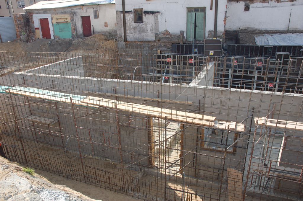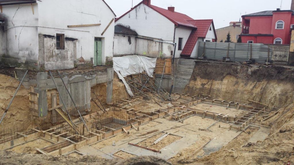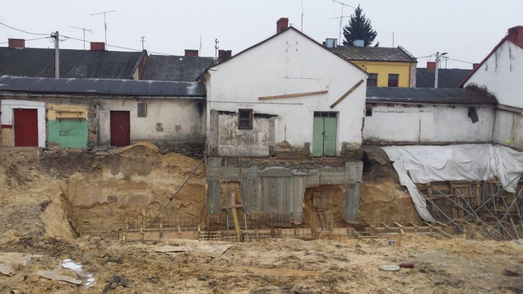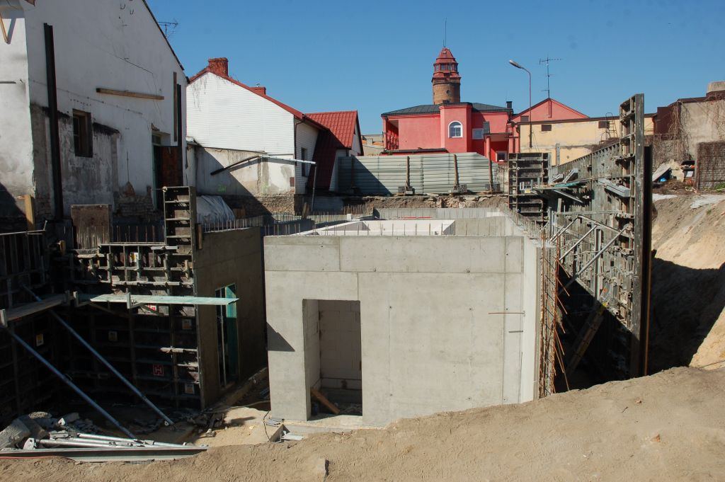 Po uporządkowaniu terenu i wykonaniu wykopu pod rozbudowywany budynek można było dokładnie ocenić fundamenty starego budynku. Okazało się, że jest gorzej niż wskazywały na to punktowe odkrywki fundamentów, wykonane w trakcie projektowania obiektu. Wykonawca robót – firma „ZAWISZA” z Radomia - dokonał więc ich wzmocnienia, podbijając je betonem (wstawił tzw. plomby).