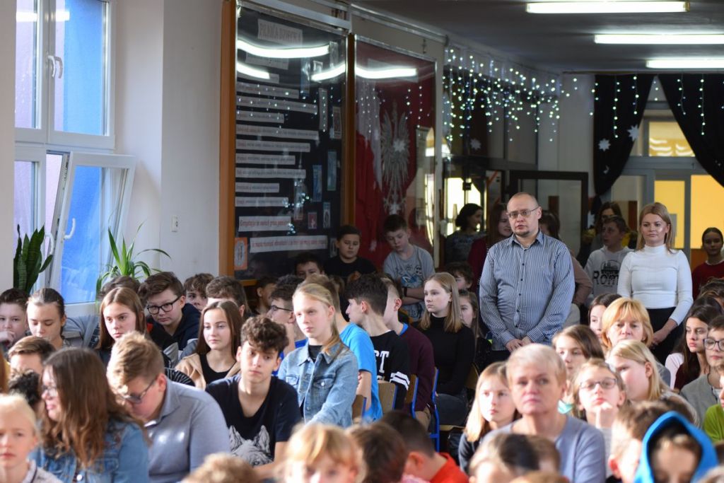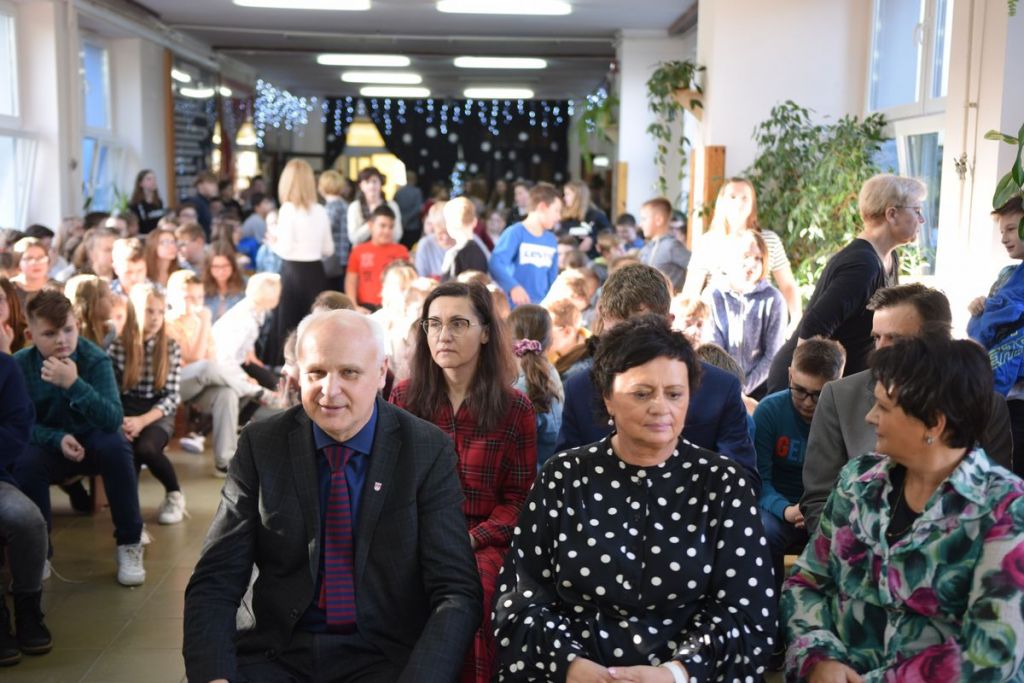 W trakcie spotkania Burmistrz Miasta z okazji zbliżających się świąt Bożego Narodzenia złożył społeczności szkolnej oraz zaproszonym gościom życzenia świąteczne i noworoczne.