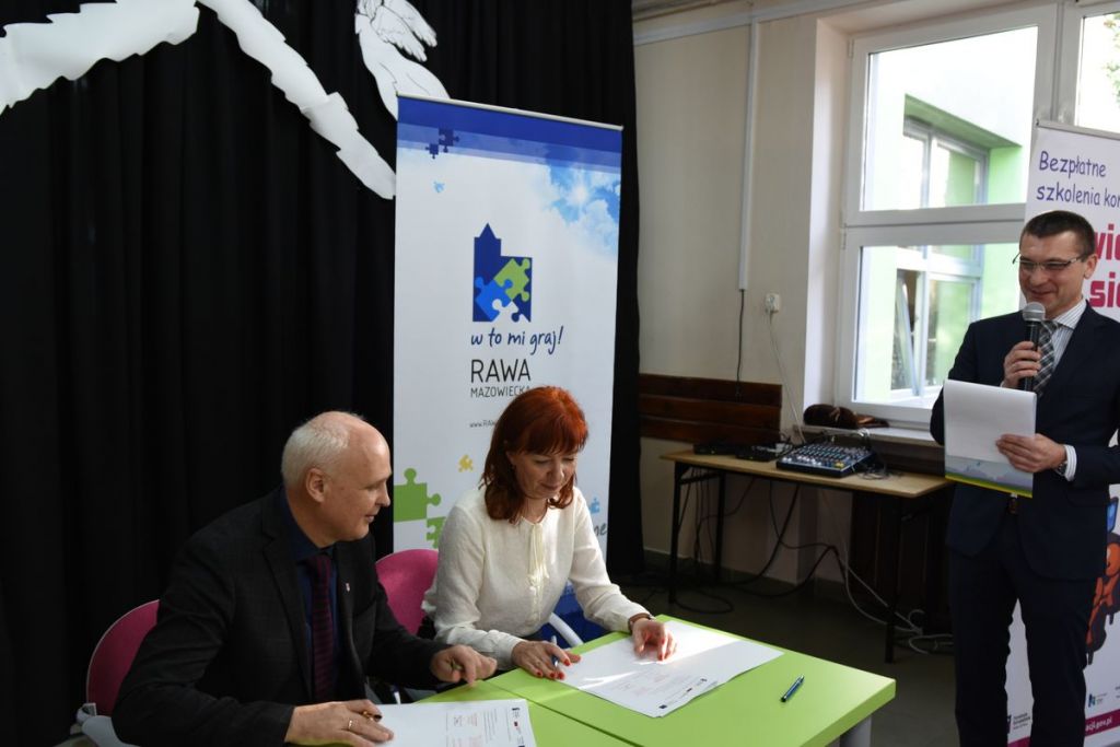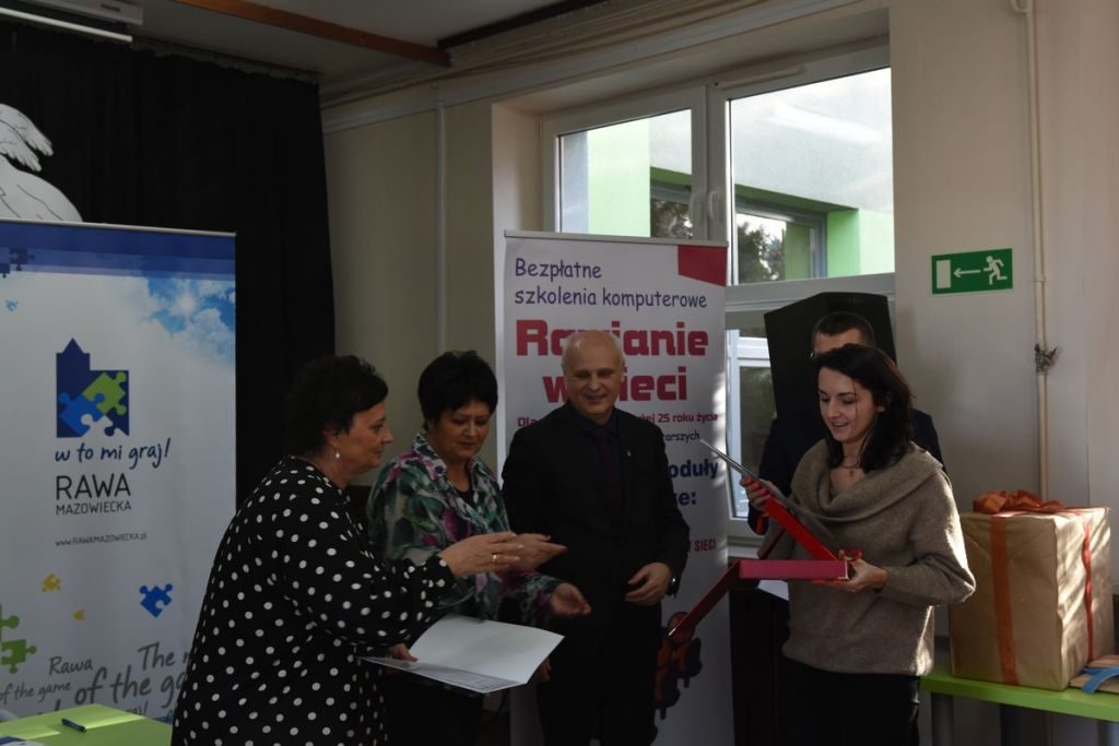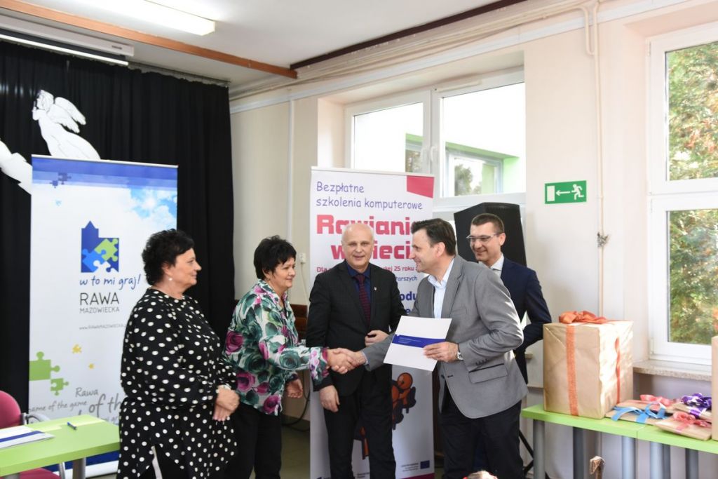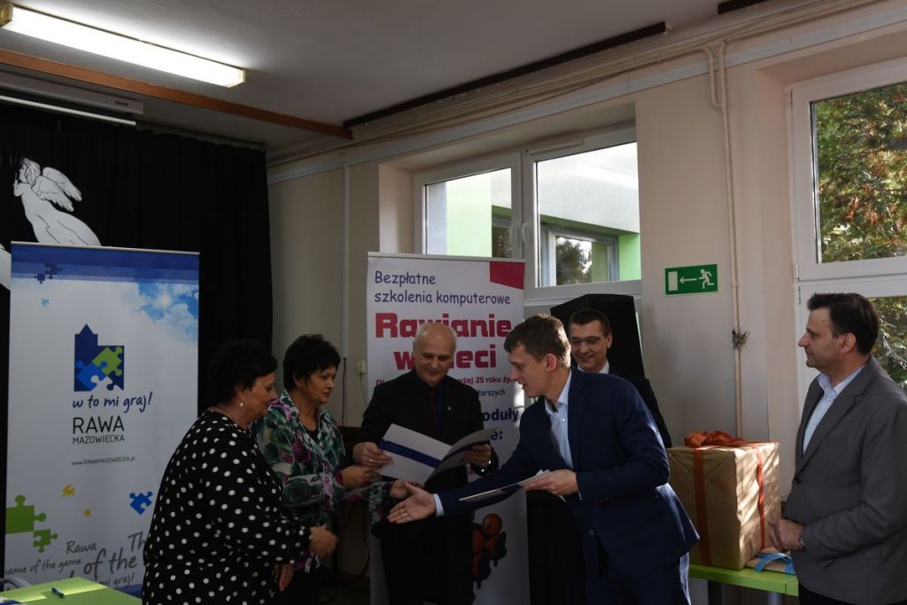 Przekazanie komputerów miało związek z oficjalnym zakończeniem projektu pt. „Rawianie w sieci” – rozwój kompetencji cyfrowych mieszkańców Rawy Mazowieckiej. Był to projekt grantowy, realizowany przez Miasto Rawa Mazowiecka na podstawie umowy podpisanej z Fundacją Promocji Gmin Polskich, która była operatorem grantu. Granty miały na celu „Podniesienie kompetencji cyfrowych mieszkańców województw: kujawsko-pomorskiego i łódzkiego” i były przyznawane ze środków Unii Europejskiej z Europejskiego Funduszu Rozwoju Regionalnego w ramach Programu Operacyjnego Polska Cyfrowa na lata 2014-2020 Oś Priorytetowa nr III: Cyfrowe Kompetencje społeczeństwa, Działanie 3.1: Działania szkoleniowe na rzecz rozwoju kompetencji cyfrowych. Pozyskano 148 320,00 zł (dofinansowanie wyniosło 100%).