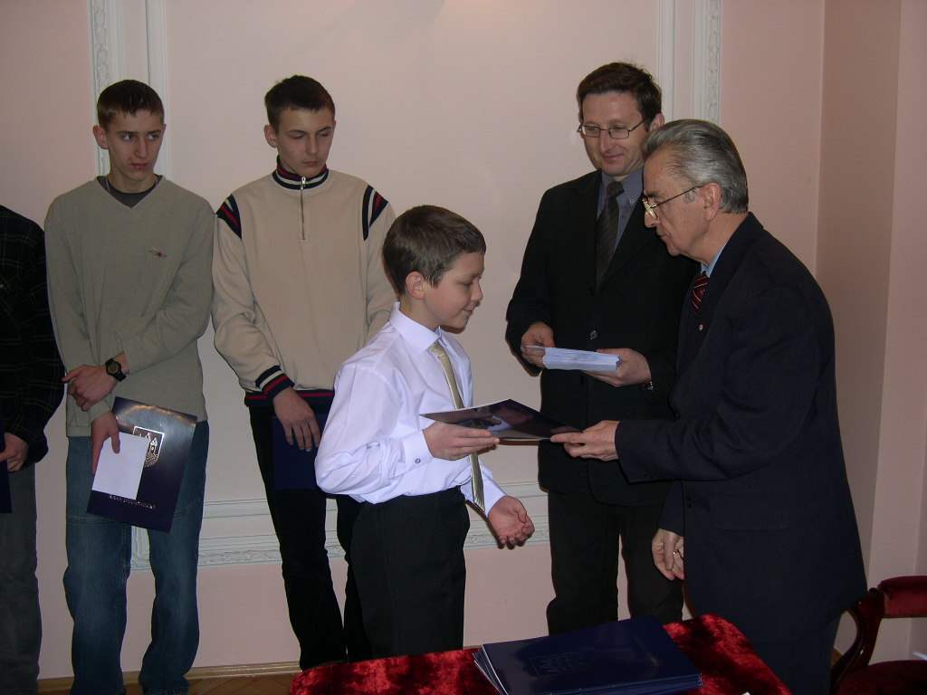 21. KONRAD KACPRZAK –uczeń: Gimnazjum nr 1 im. Polskich Noblistów w Rawie Mazowieckiej – stypendium za bardzo dobre i celujące wyniki w nauce: średnia ocen: 5,54, zachowanie: wzorowe – wyróżnienie w Międzynarodowym Konkursie Matematycznym „KANGUR”, finalista Wojewódzkiego Konkursu Historycznego dla uczniów gimnazjów województwa łódzkiego w r. szk. 2003/2004 (wniosek został złożony przez dyrektora szkoły).