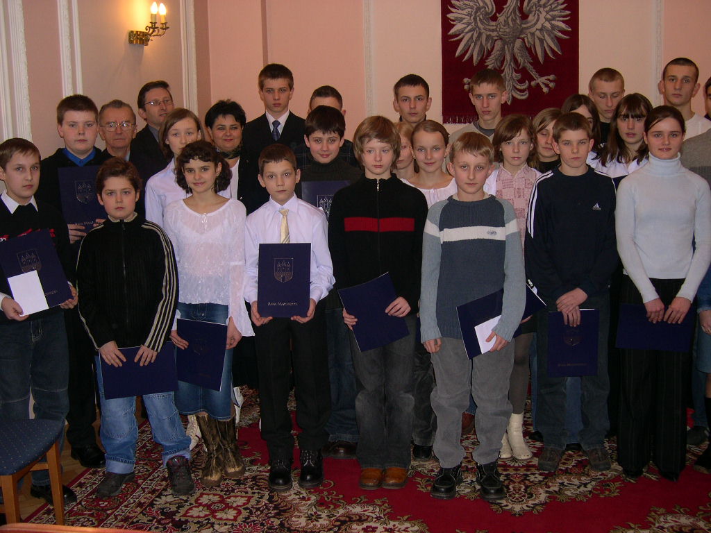 18. DAMIAN WIETESKA – uczeń Szkoły Podstawowej nr 2 im. Marii Konopnickiej w Rawie Mazowieckiej – stypendium za bardzo dobre i celujące wyniki w nauce: średnia ocen 5,5, zachowanie: wzorowe – nagroda typu B w Międzynarodowym Konkursie Matematycznym „KANGUR”, nagroda typu C w Konkursie Języka Angielskiego „FOX 2004” (wniosek został złożony przez dyrektora szkoły).