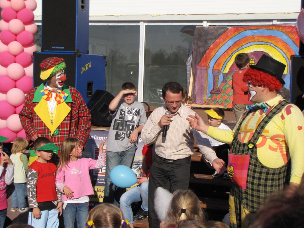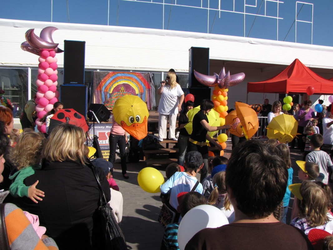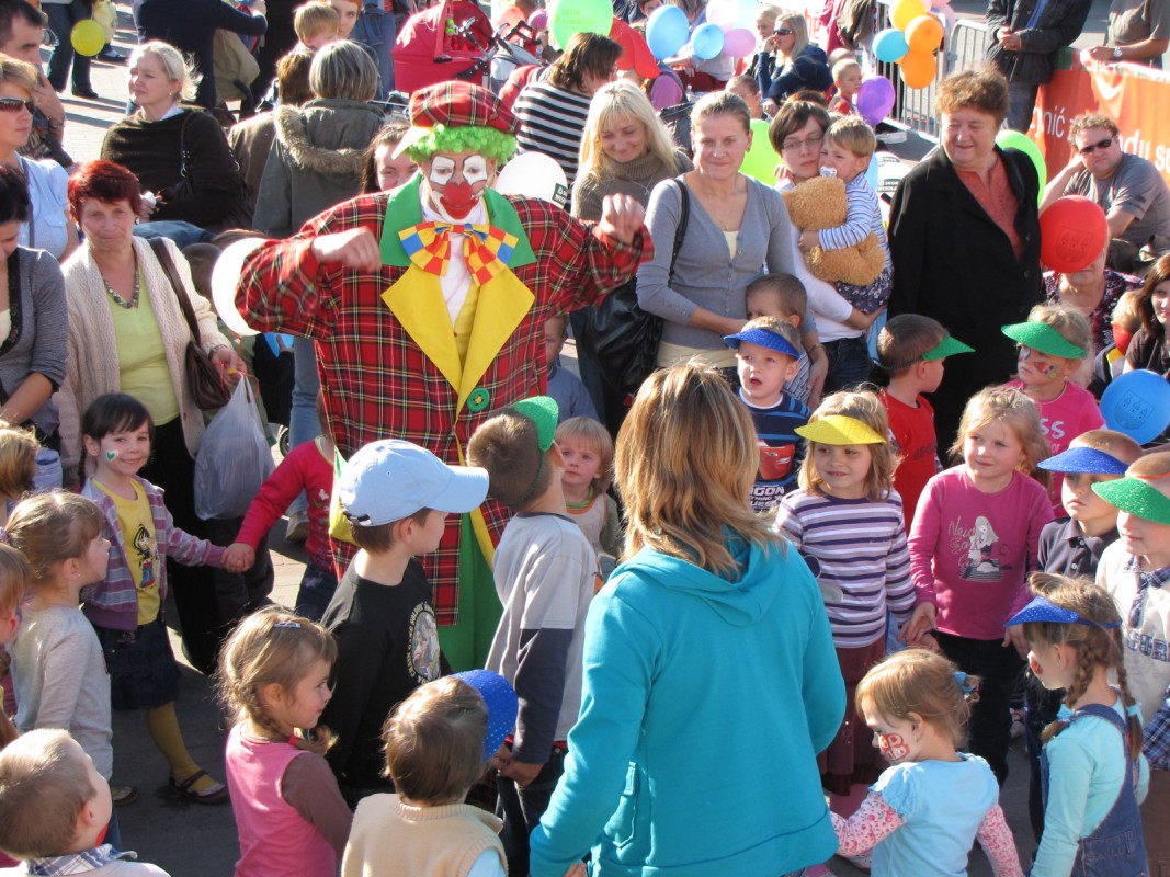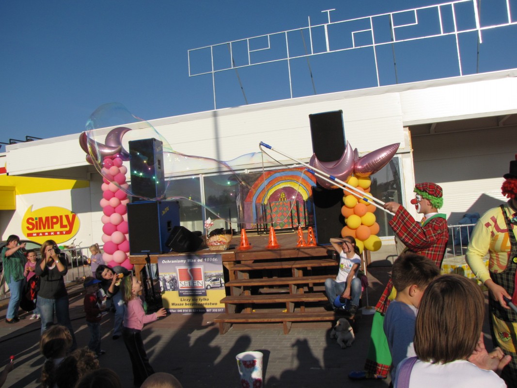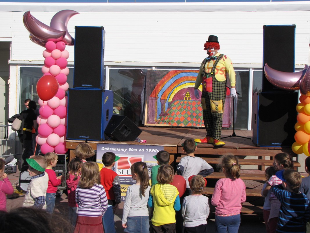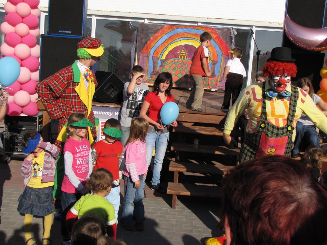 Festyn rozpoczął się koncertem pt. „A mnie jest wesoło” w wykonaniu Pani Uli Pakuły. Koncert był połączony ze wspólną zabawą dzieci i ich opiekunów z wykorzystywaniem wielu kolorowych rekwizytów. Po koncercie przyszedł czas na występ Klaunów Pufcia i Tofcia, którzy prowadzili blok z piosenkami oraz nauką tańców klaunowo biesiadnych. Poza tym odbyło się wiele konkursów dla dzieci i ich rodziców, w trakcie których klauni rozdali mnóstwo słodyczy i kolorowych zwierzątek zrobionych z balonów. Pokazali również jak się robi olbrzymie bańki mydlane.