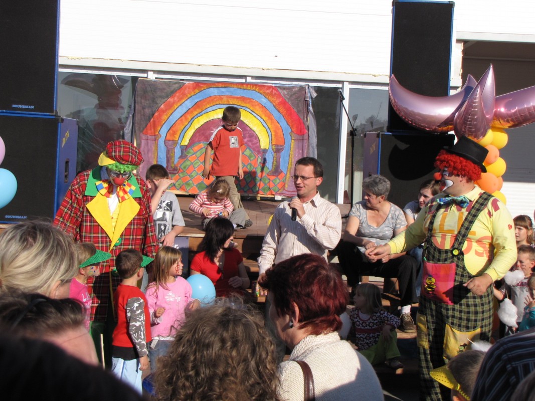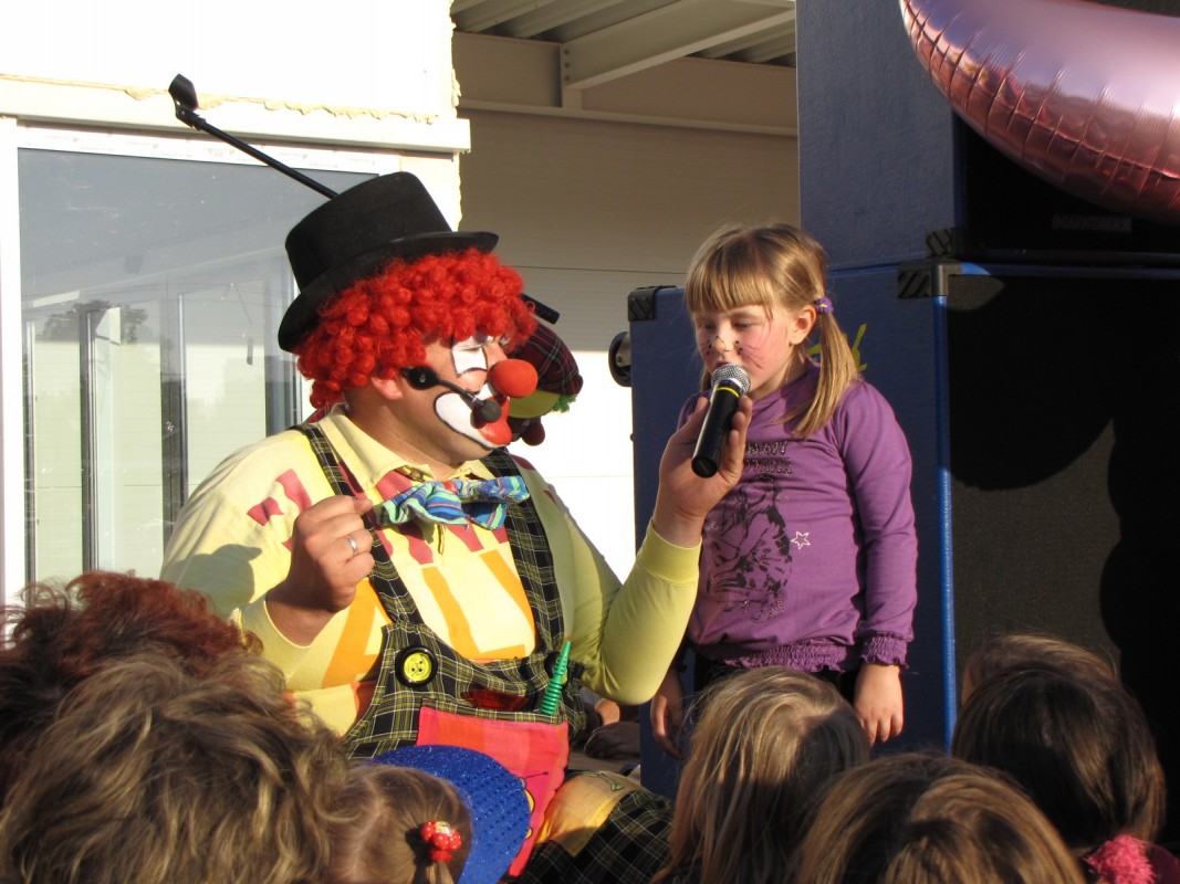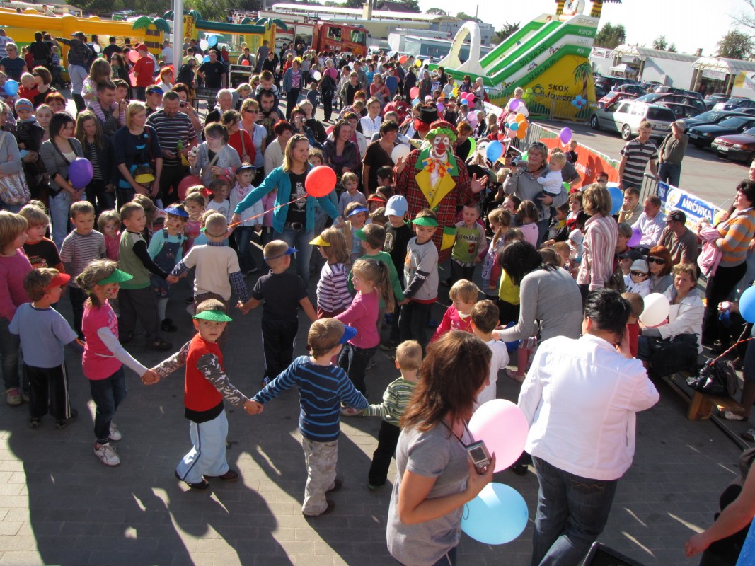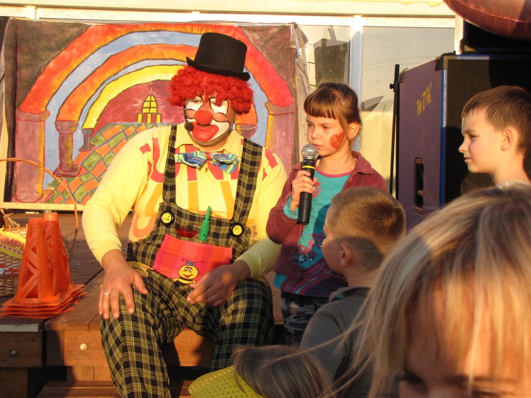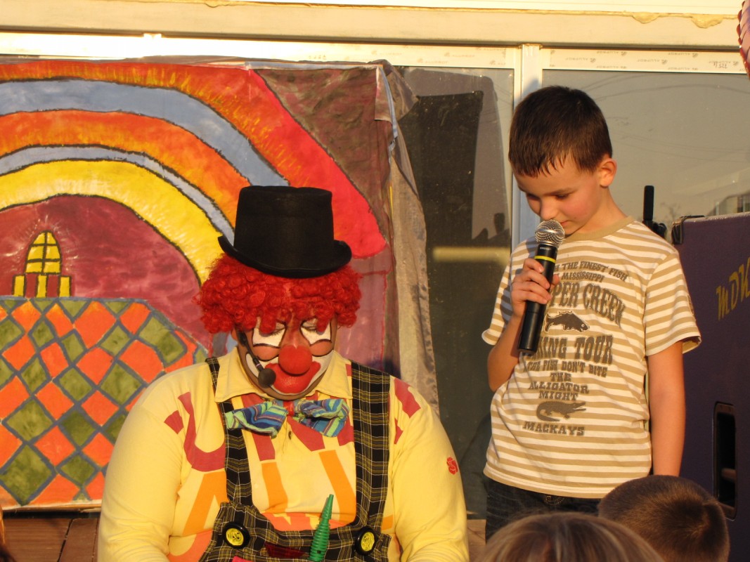 Festyn rozpoczął się koncertem pt. „A mnie jest wesoło” w wykonaniu Pani Uli Pakuły. Koncert był połączony ze wspólną zabawą dzieci i ich opiekunów z wykorzystywaniem wielu kolorowych rekwizytów. Po koncercie przyszedł czas na występ Klaunów Pufcia i Tofcia, którzy prowadzili blok z piosenkami oraz nauką tańców klaunowo biesiadnych. Poza tym odbyło się wiele konkursów dla dzieci i ich rodziców, w trakcie których klauni rozdali mnóstwo słodyczy i kolorowych zwierzątek zrobionych z balonów. Pokazali również jak się robi olbrzymie bańki mydlane.
